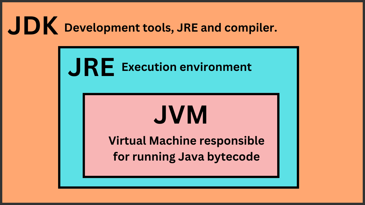 This is the graphical illustration of the JDK, JRE, and JVM where the JDK is the parent and it is holding other components as child in it to complete the development environment.