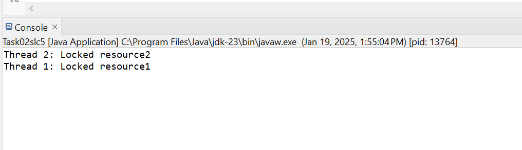 Here we can see that one thread is holding one resource and waiting for another, but this creates a circular deadlock in which both threads are stuck in the loop and no progress is made between them.
