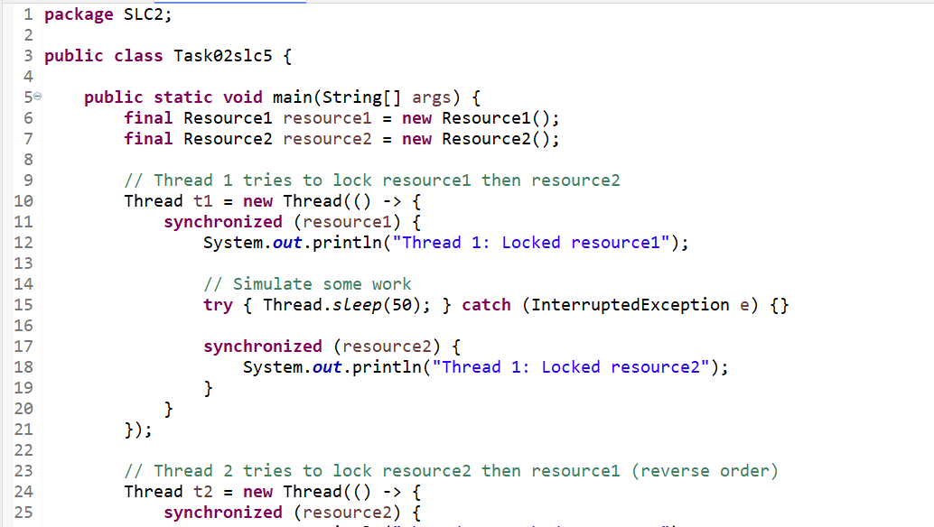 Thread1locksresource1then locks toresource2. - First