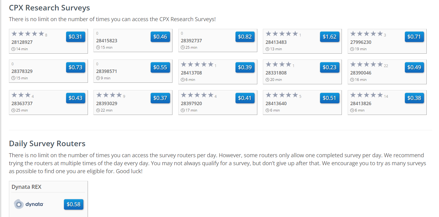 প্রতিটা হাই পেইড সার্ভেতে আপনি $১.৫০ থেকে $৫ পেতে পারেন । তবে, এ জাতীয় সার্ভে ইউরোপ আর আমেরিকা ছাড়া আমাদের দেশে খুব কমই available । আমাদের দেশগুলোর জন্য $০.১০-$১ এর সার্ভেই বেশি । তবে, এই সাইটে প্রচুর Offers রয়েছে যেগুলো কমপ্লিট করে দিনে $১০-$১৫ অব্দি আর্ন করা পসিবল ।