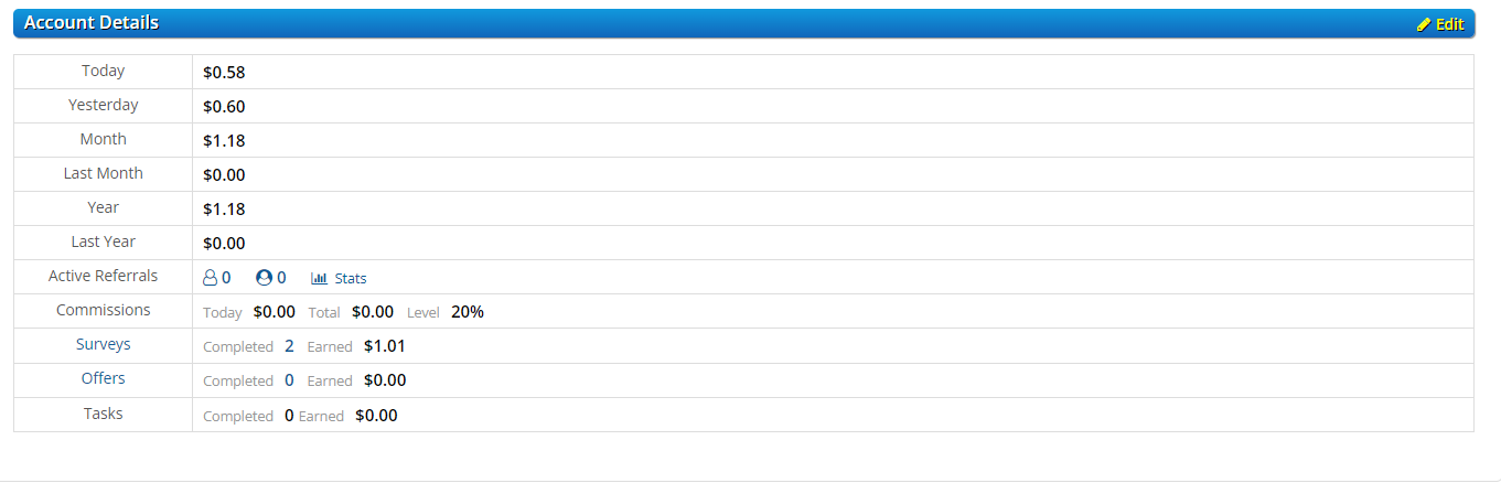 আমার Earnings দেখুন । কাল জয়েন করে দু'টি সার্ভে কমপ্লিট করে পেয়েছি $১.১৮ USD ।