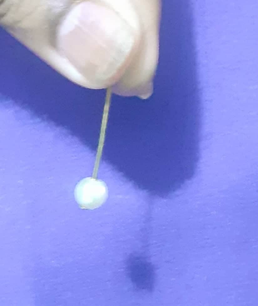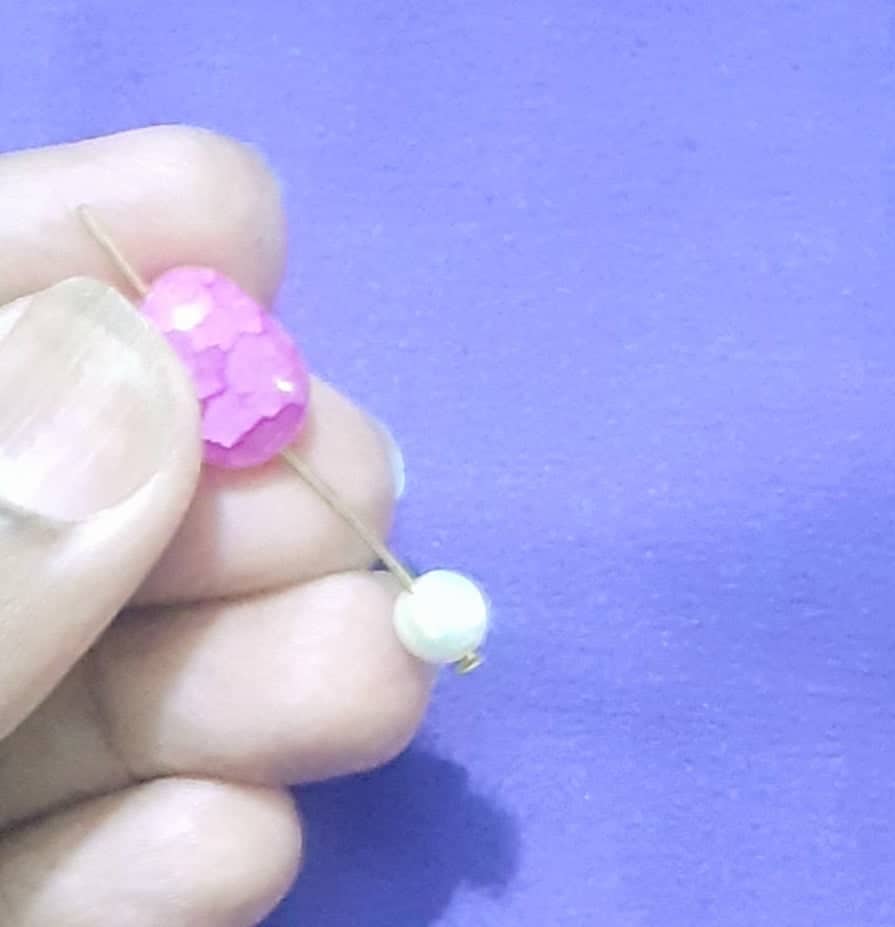 প্রথমে একটি হেডপিনে একটি ছোট সাদা বিডস ঢুকিয়ে নিতে হবে। নিচের ছবির মতো করে।