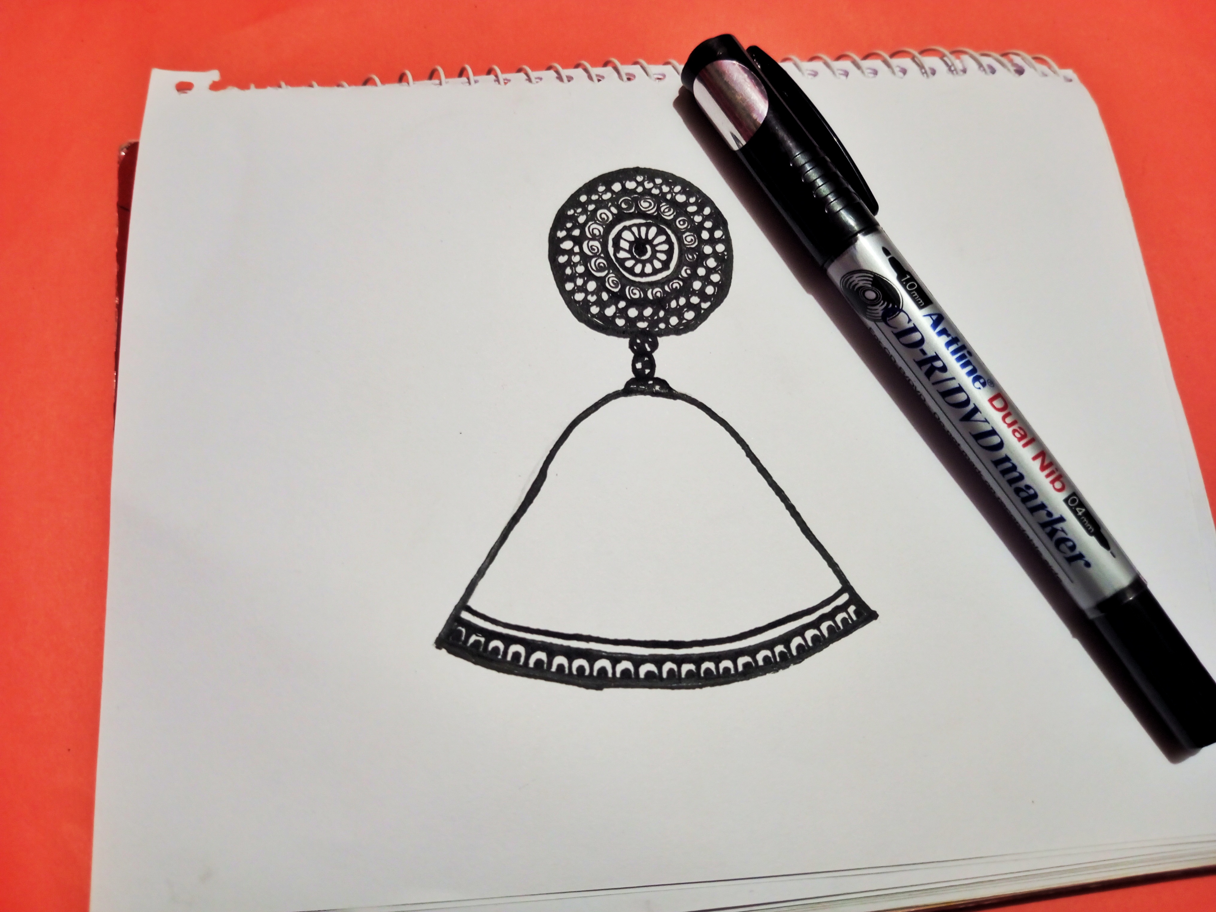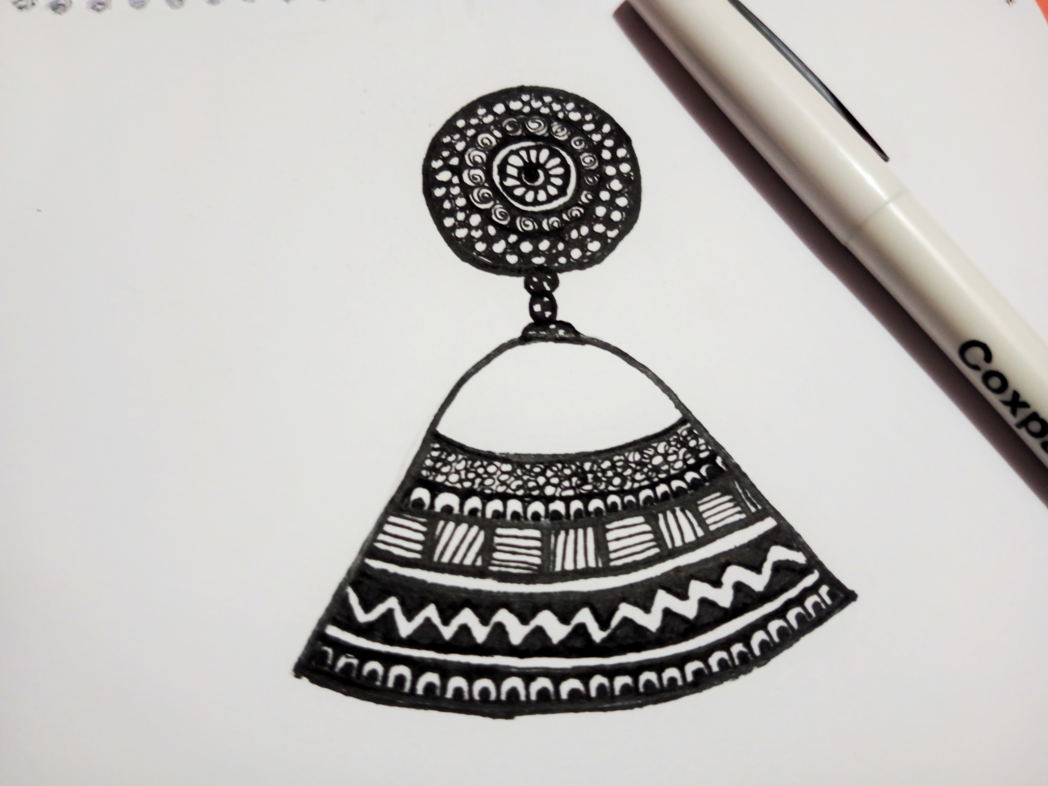 ঝুমকার উপরের সাইডে যে বৃত্তটি আছে সেই বৃত্তটির ভিতর আমি নিখুঁতভাবে ম্যান্ডেলা আর্ট করে নেওয়ার চেষ্টা করছি।