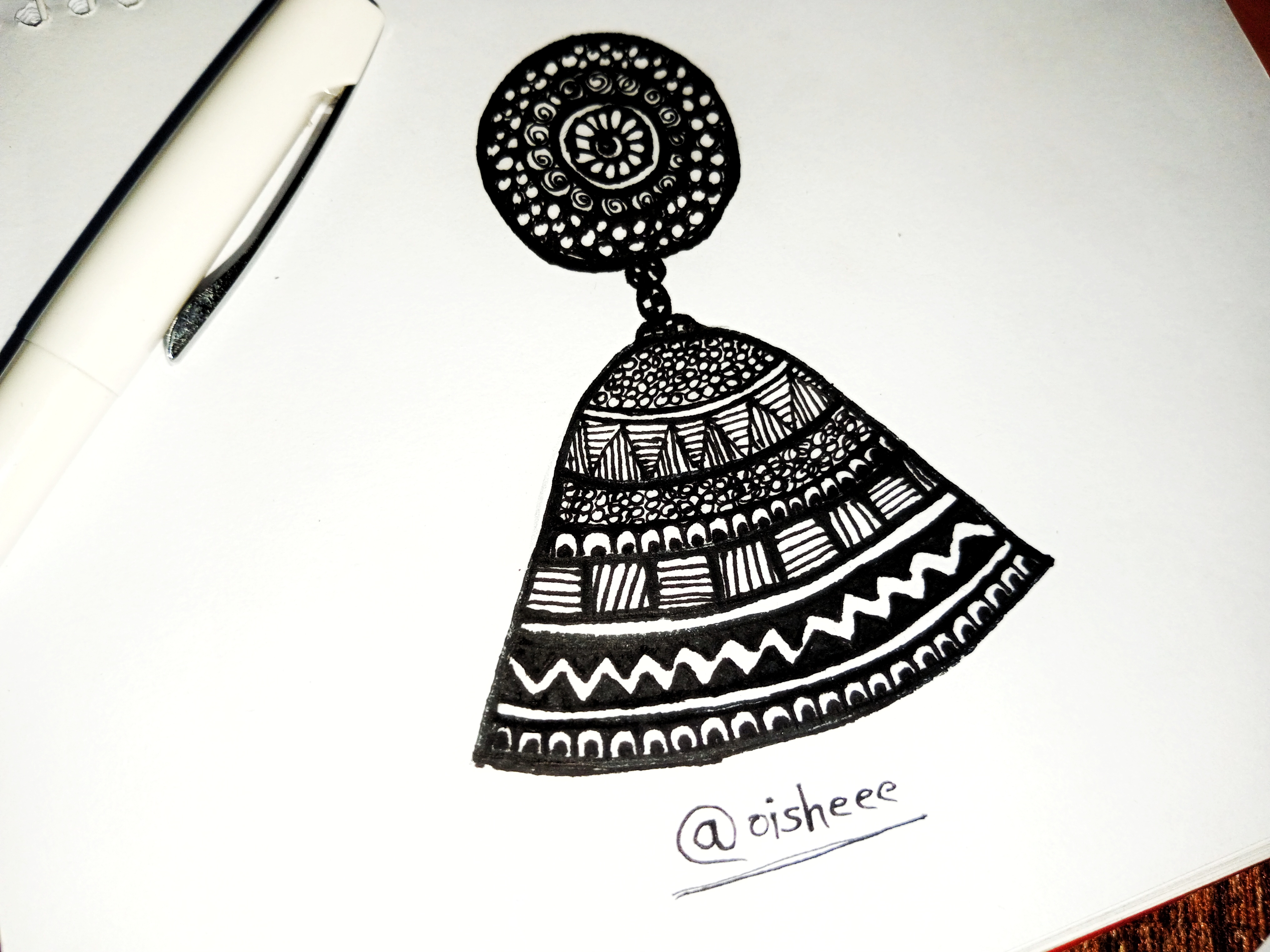 ম্যান্ডেলার আর্ট গুলো জেল পেন দিয়ে করলেই দেখতে সুন্দর লাগে। নরমাল কলম দিয়ে আঁকলে এতটা সুন্দর হয় না। আপনার আজকের ঝুমকার আর্টটি খুবই চমৎকার হয়েছে। এরকম ঝুমকা বাস্তবে পাওয়া গেলে তো খুব ভালো লাগতো দেখতে। ভিতরের ডিজাইনগুলো খুব সুন্দর ভাবে এঁকেছেন জন্য এত ভালো লাগছে দেখতে।