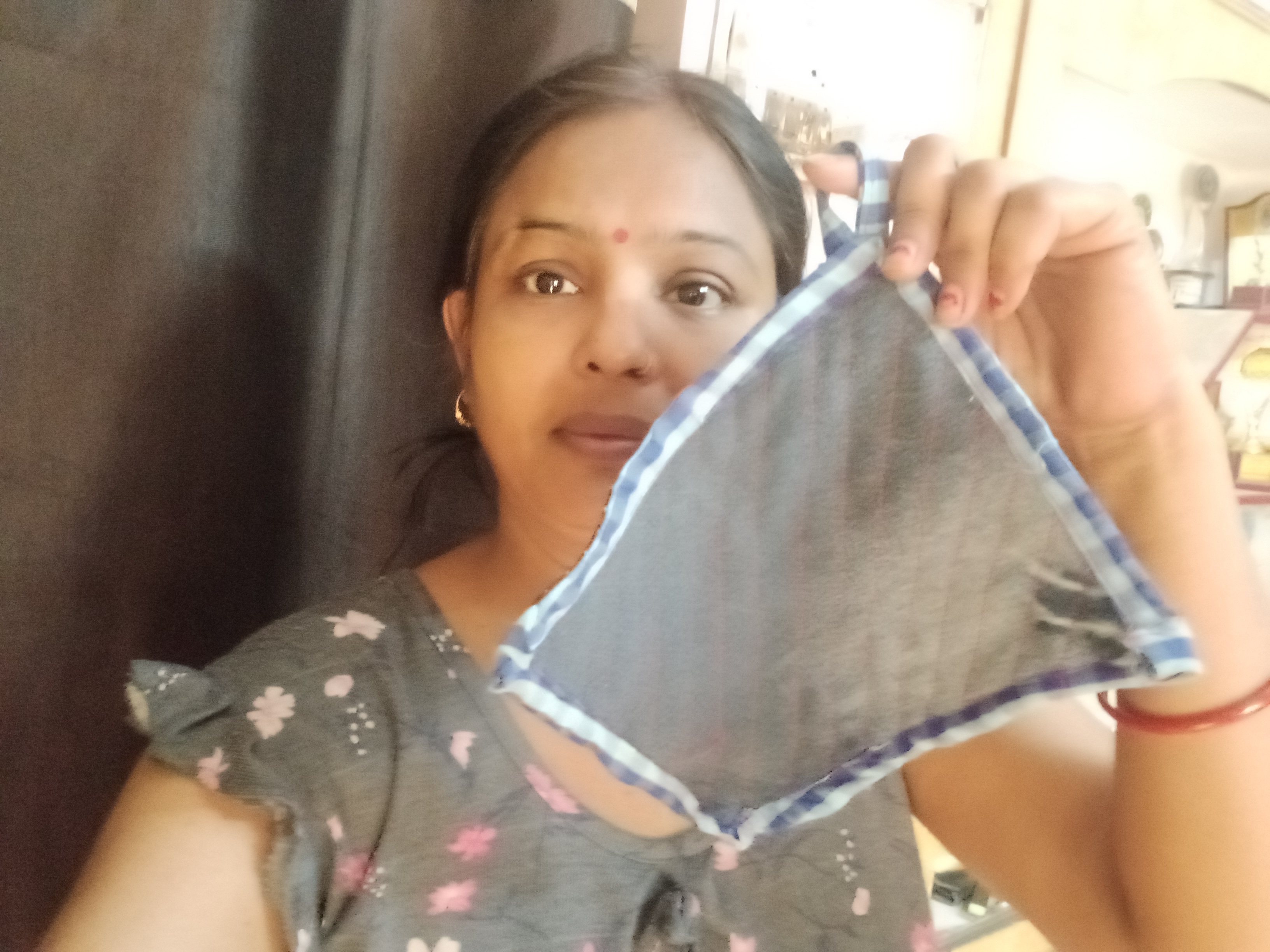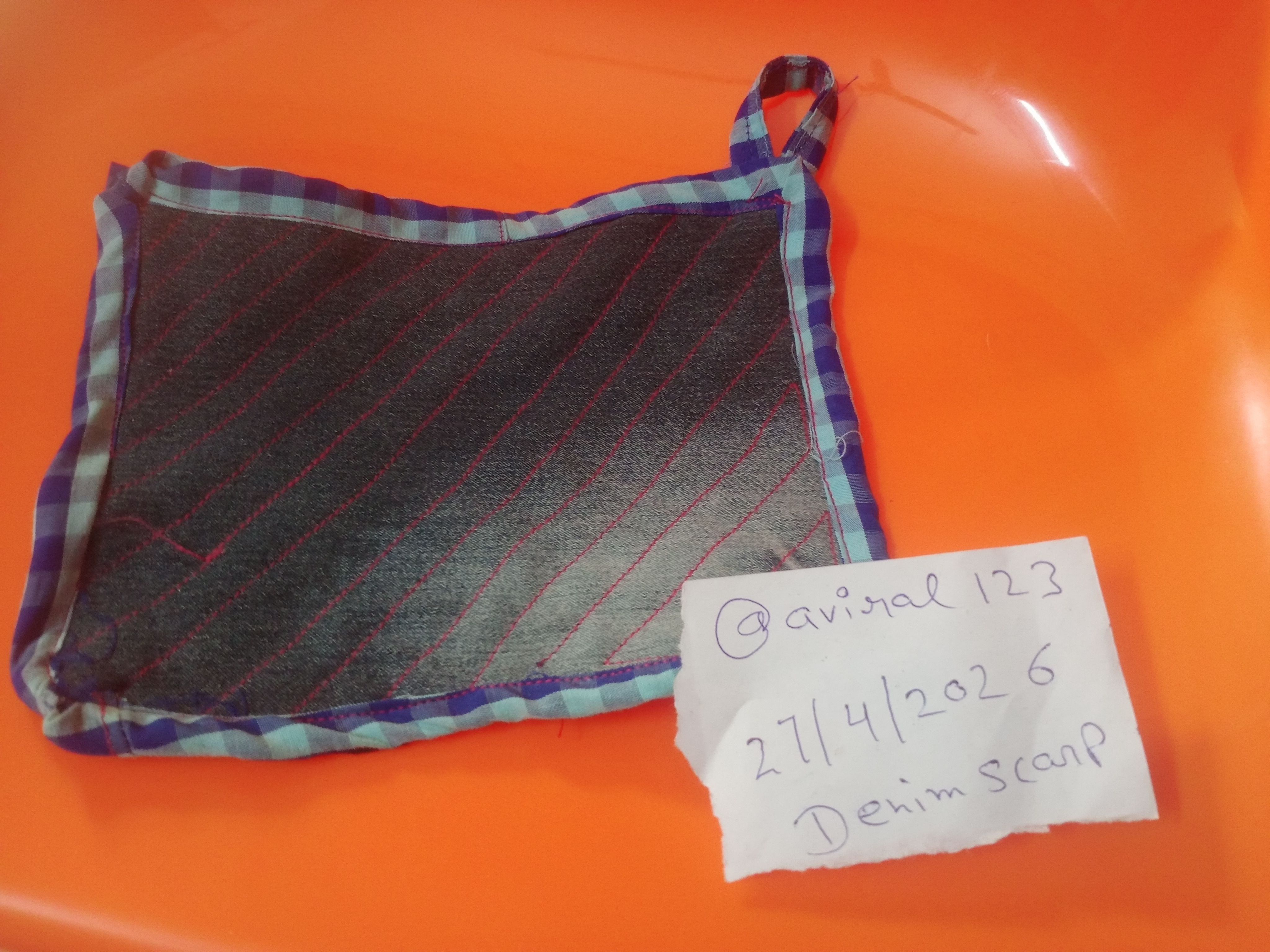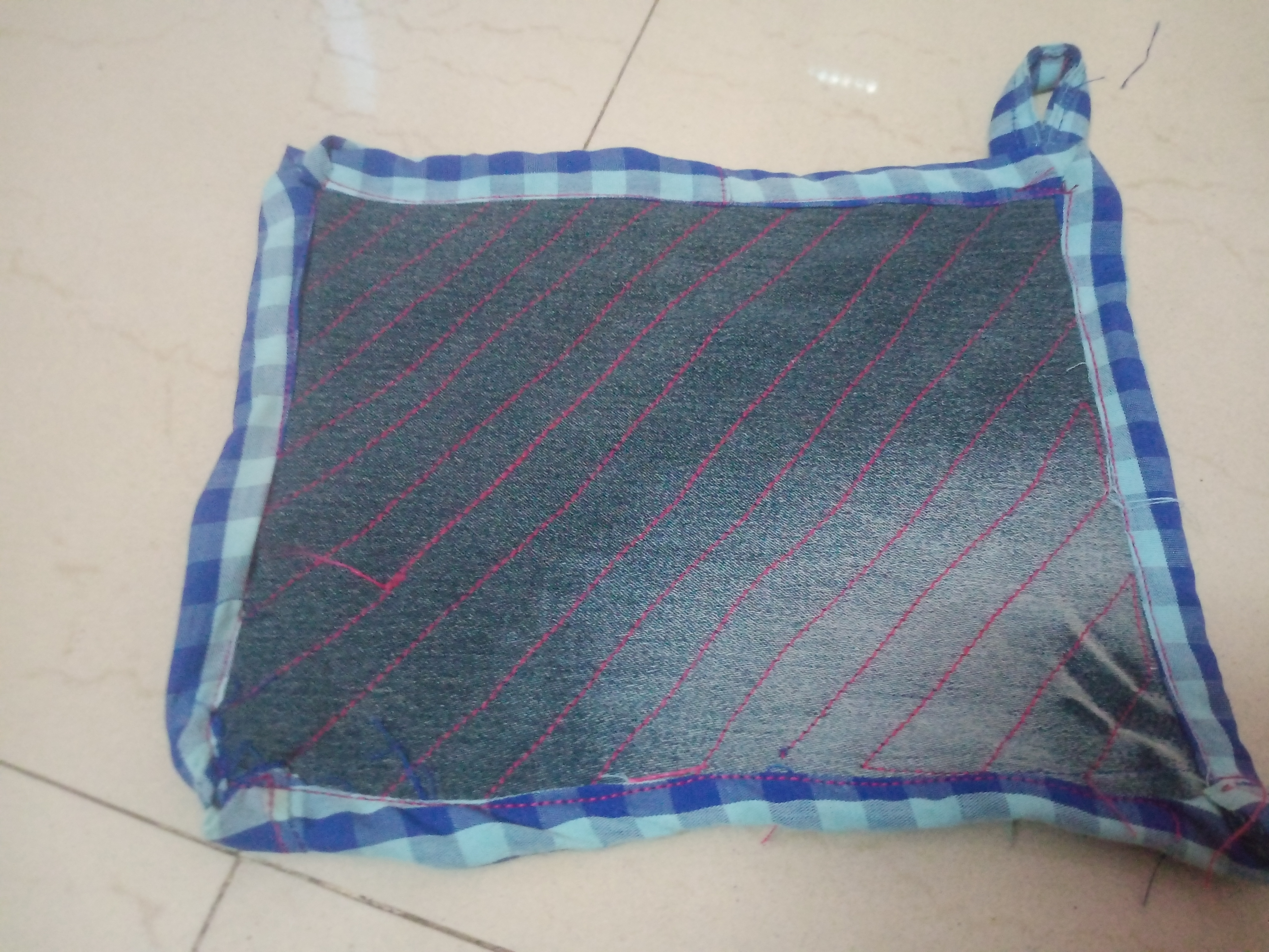 Ultimately, a brand-new, useful item is created. For this particular project, I utilized some of my children's old shirts and one of my own cotton kurtas. I paid particular attention to the choice of fabric, keeping in mind that this item would be used in the kitchen; I wanted to ensure that the material would not scorch or burn when used to handle hot pots and pans. And our hands didn't get burned either. For kitchen use, there is simply no fabric better than denim and cotton.