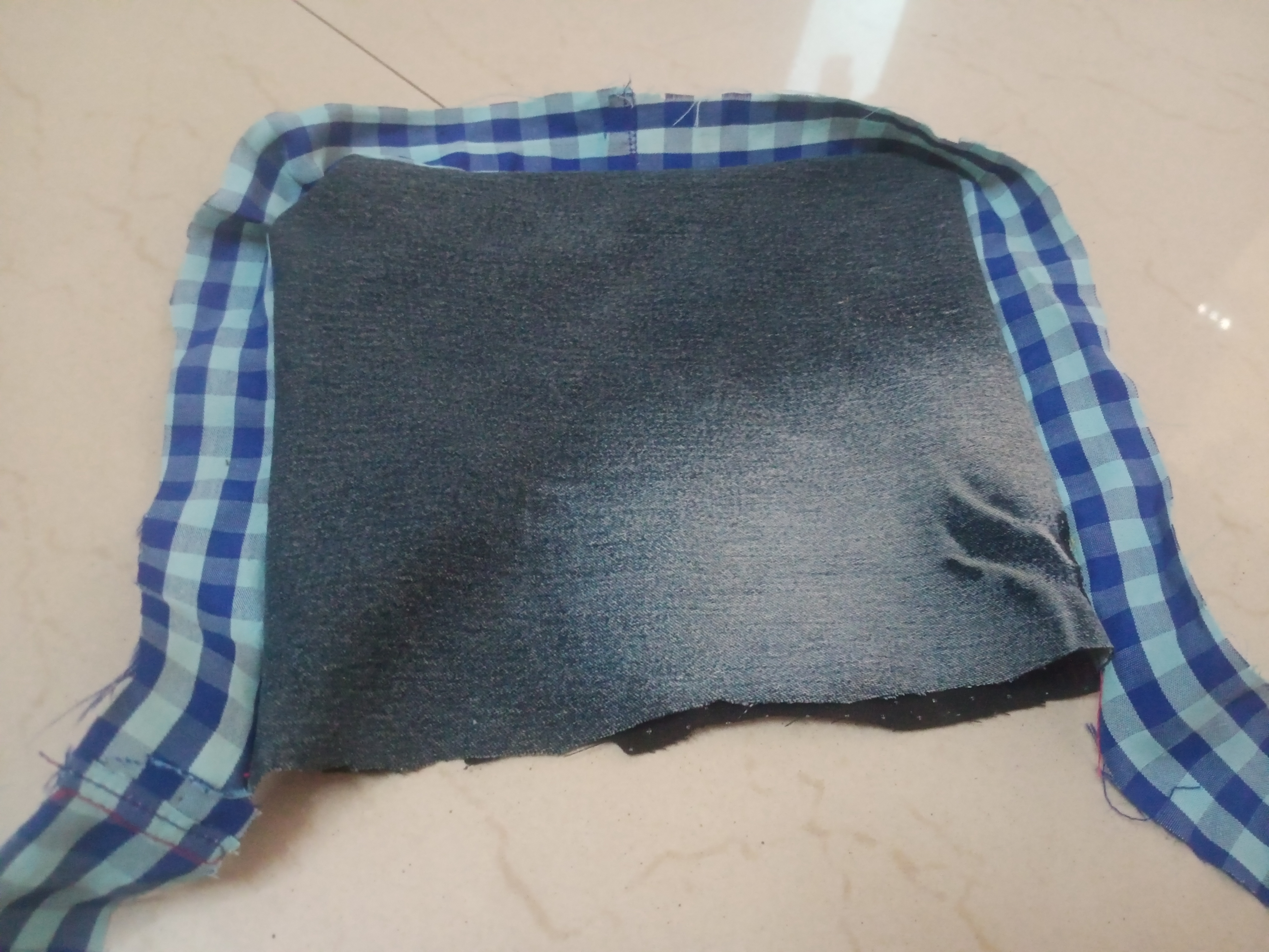 - I began by selecting a pair of jeans, from which I cut two rectangular pieces,