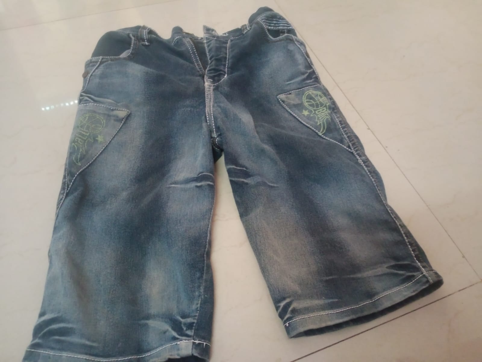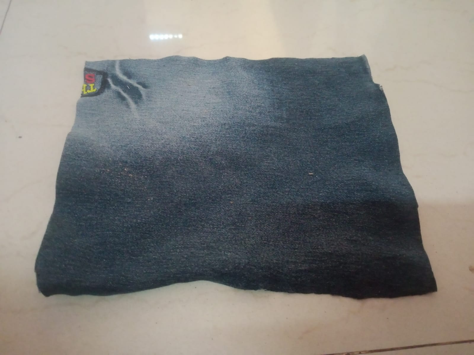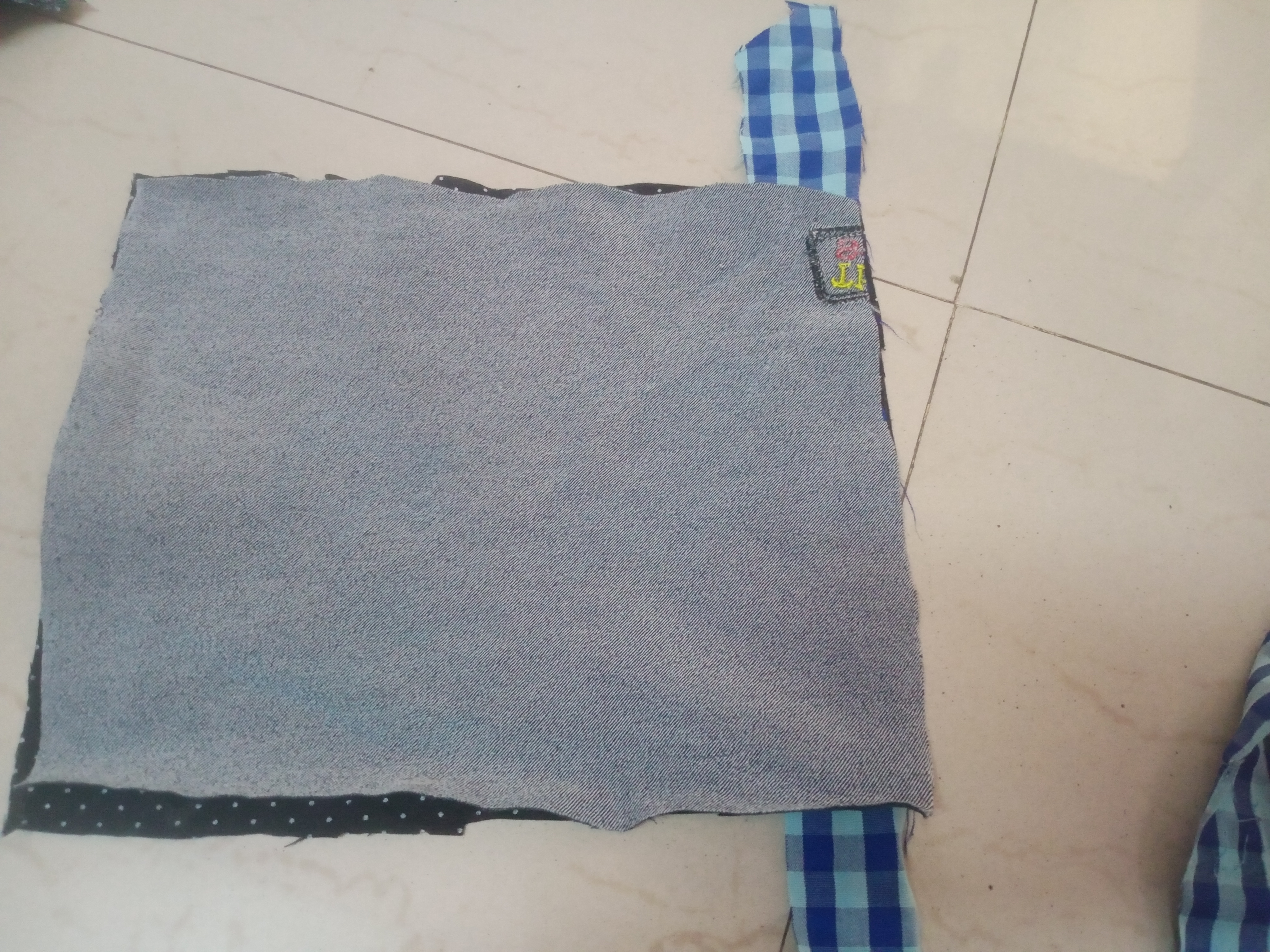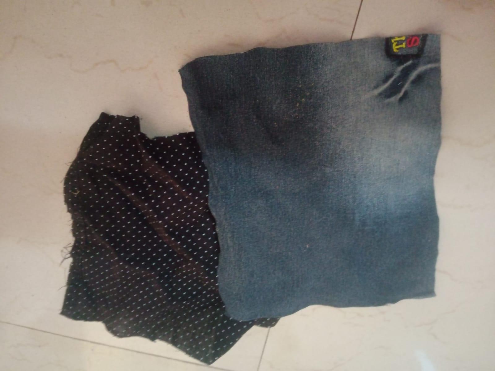 First, I sorted through the piece of discarded clothing we had set aside—specifically jeans and cotton garments—to select my materials. I never simply throw away old clothes, as they invariably come in handy for some purpose or another down the line.