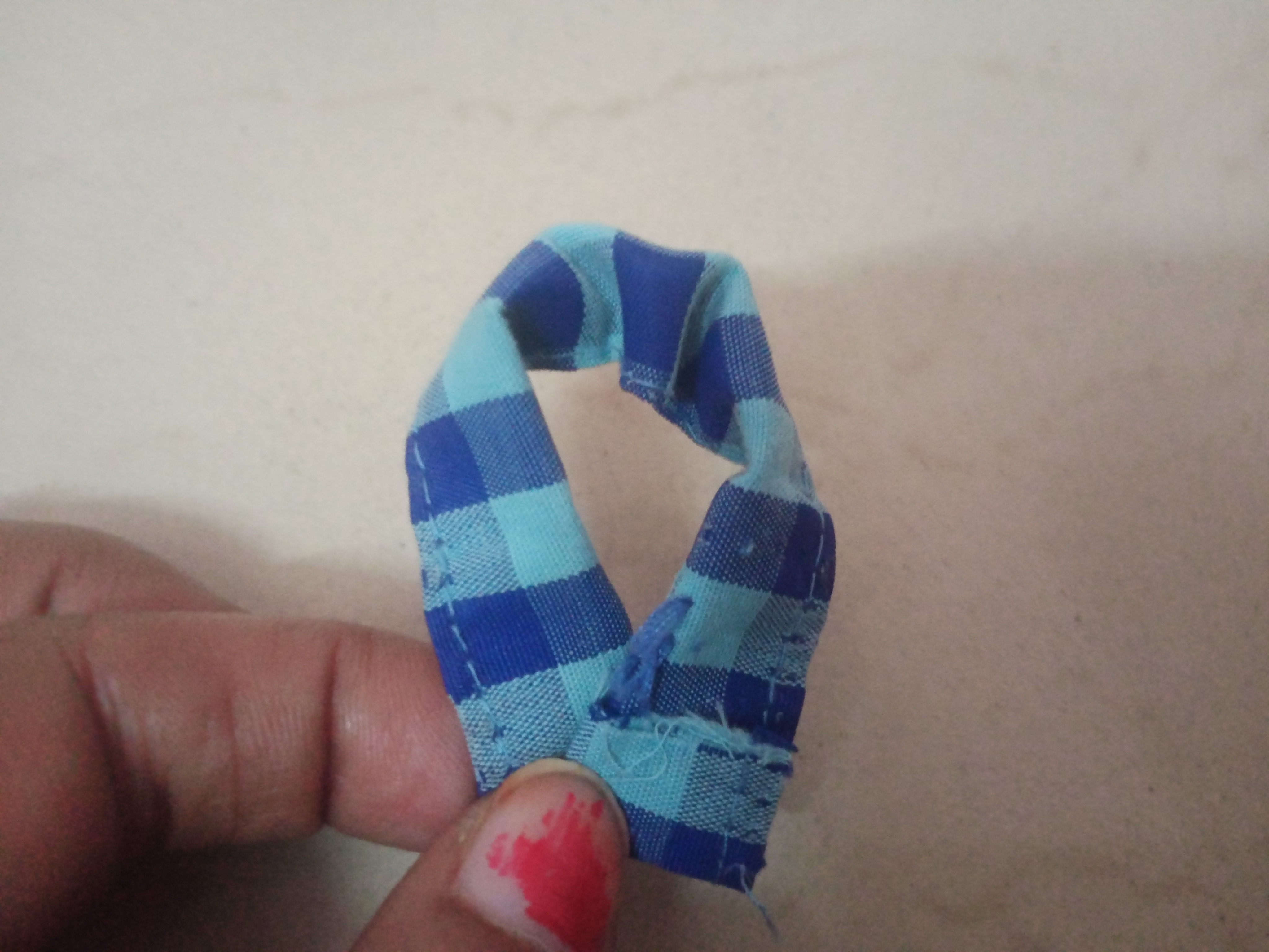 - After stitching, I turned the piece right-side out. Once turned, I was left with a perfectly finished, neat piece of fabric.