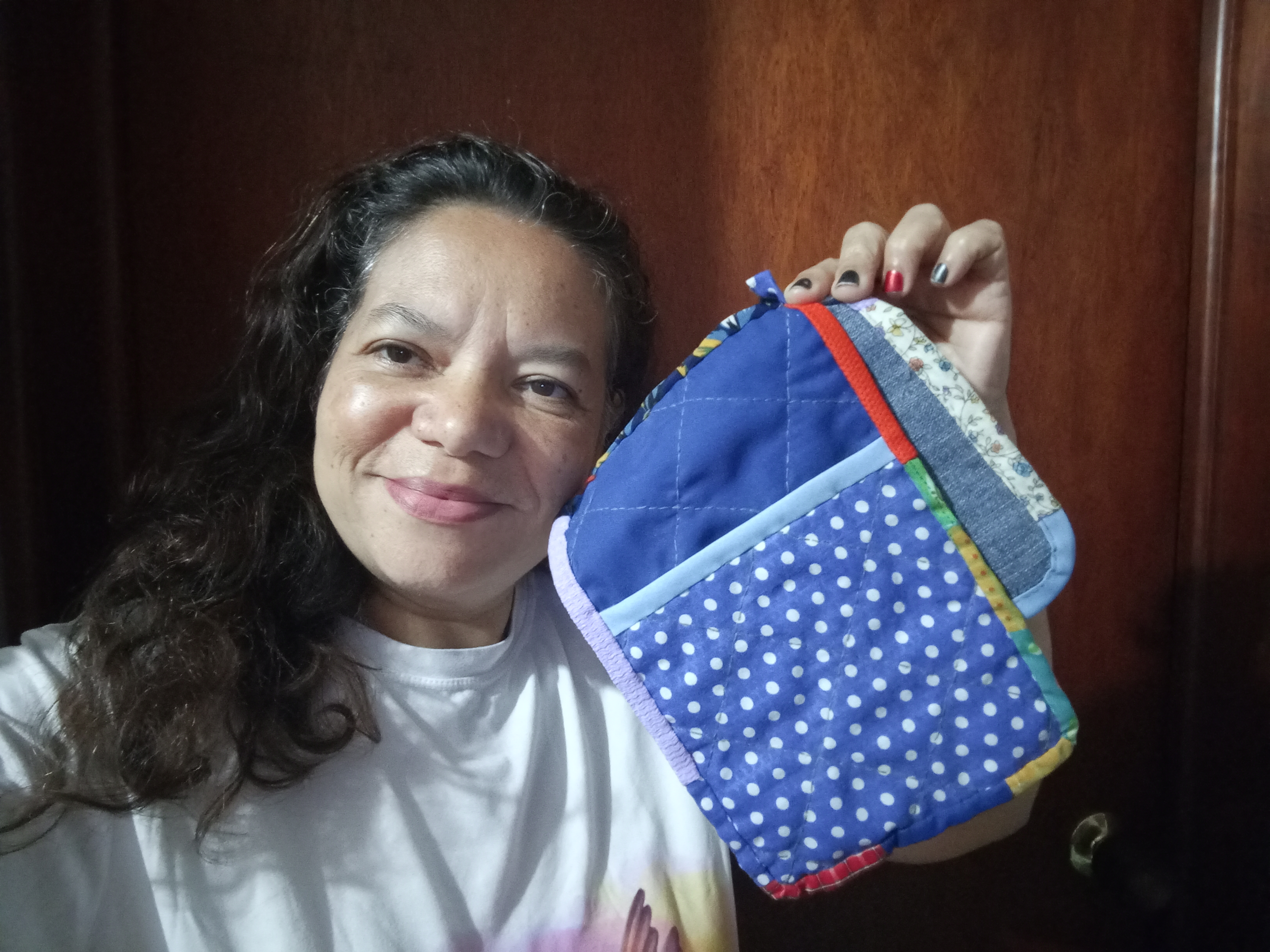 Está cerrando otra semana que nos dio la oportunidad de crear un nuevo artículo utilitario a partir de textiles reutilizables, aplicando así las 3R del reciclaje a través del upcycling. A continuación desarrollo cómo me fue en esta actividad mientras elaboraba un pequeño juego de agarraollas para mi cocina, de acuerdo a las instrucciones de @lunasilver. En primer lugar seleccioné y preparé adecuadamente las telas que utilizaría para este proyecto de costura. Me determiné a elaborar dos modelos de agarraollas, para lo cual corté las siguientes piezas de tela reutilizables: Confección Para el armado del modelo 1, el cual cuenta con un bolsillo para introducir la mano, una vez planchadas, fijé las dos piezas de 25 x 16 cm y entre ellas la tela de relleno de 23 x 12 cm. Realicé costuras lineales a mano a modo de fijar las telas y que resultara a la vez decorativo. Realicé el mismo procedimiento con las piezas de 16 x 16 cm y su tela de relleno. A esta pieza le coloqué un sesgo de color azul en uno de los lados. A continuación coloqué las dos piezas resultantes una contra la otra, uniendo los bordes sin sesgo (por un lado es visible la tela de algodón y por el otro la tela de jean). Con la tijera hice cortes para redondear las esquinas. Finalmente coloqué un visto de retazos a lo largo y ancho del borde del agarraollas a modo de acabado final y decorativo. Dejé un trozo extra del mismo visto de retazos para darle forma de asa en una de las esquinas inferiores Para el armado del modelo 2, el procedimiento consistió en: En la siguiente imagen se observan ambos modelos terminados (vistas por ambos lados): A continuación dejo el enlace de vídeo de los procedimientos, realizado y editado por mí en la app InShot, subido a la plataforma Speem. IPFS La tela utilizada para el proyecto proviene de: Al momento de terminar la edición de mi participación había cuatro publicaciones de otris usuarios que elaboraron sus respectivos agarraollas, a todas he dejado un comentario con mis impresiones, cuyos enlaces están a continuación: Estas participantes tienen en común que emiten expresiones muy claras sobre lo bueno que ha sido aprovechar telas de prendas de vestir que ya no usan ellas o sus familiares, así como retazos para realizar la labor. Además cada una a su manera ha aplicado alguna idea creativa al armar su proyecto, como aprovechar una figura preexistente en la pieza de tela, combinar los colores de forma intencional para un resultado más atractivo a la vista o hacer algún diseño especial con la costura. Todas están de acuerdo en que este proyecto es útil en su cocina para proteger sus manos, que de alguna forma contribuyen con el ambiente y que pueden ser un ejemplo a seguir. El dar a conocer actividades que podemos realizar para aplicar las 3R y ser más amables con el medio ambiente reduciendo nuestra huella ecológica es algo que hago de forma cotidiana y en particular en la plataforma a través de mi contenido regular ya que es prácticamente la única red social en la que estoy más activa, bien sea mostrando pequeños proyectos para alargar la vida de mis prendas, diarios personales en los que asisto a jornadas de reciclaje o reseñas donde las posibilidades de incorporar o reflexionar sobre el reciclaje sea parte de nuestras vidas. En esta ocasión no he compartido este proyecto en X por no tener acceso a mi cuenta por el momento. Es posible que una vez publicado, comparta el enlace en mis historias de Instagram, en cuyo caso dejaré la captura en mis comentarios de este post. Invito a @rosselena, @tahispadron y @dailianny a participarRealiza una descripción coherente y explicativa del proceso realizado con imágenes propias