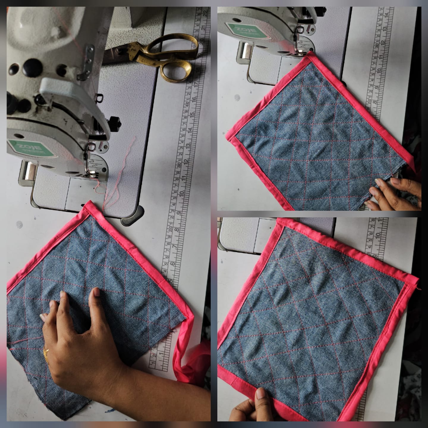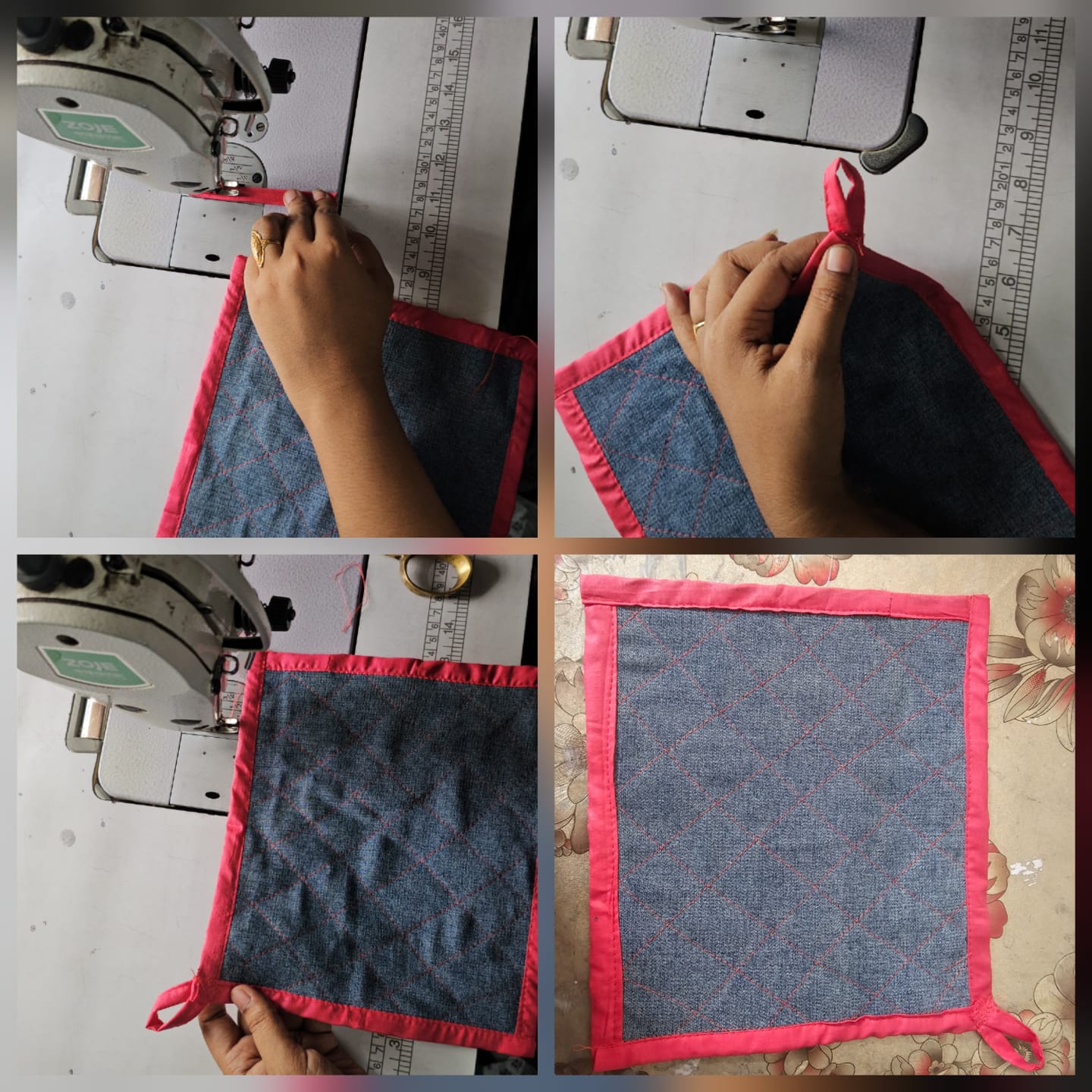 Hola bella te quedó muy lindo la agarradero con ese detalle especial del sesgo y el color en combinación con la tela de jeans.