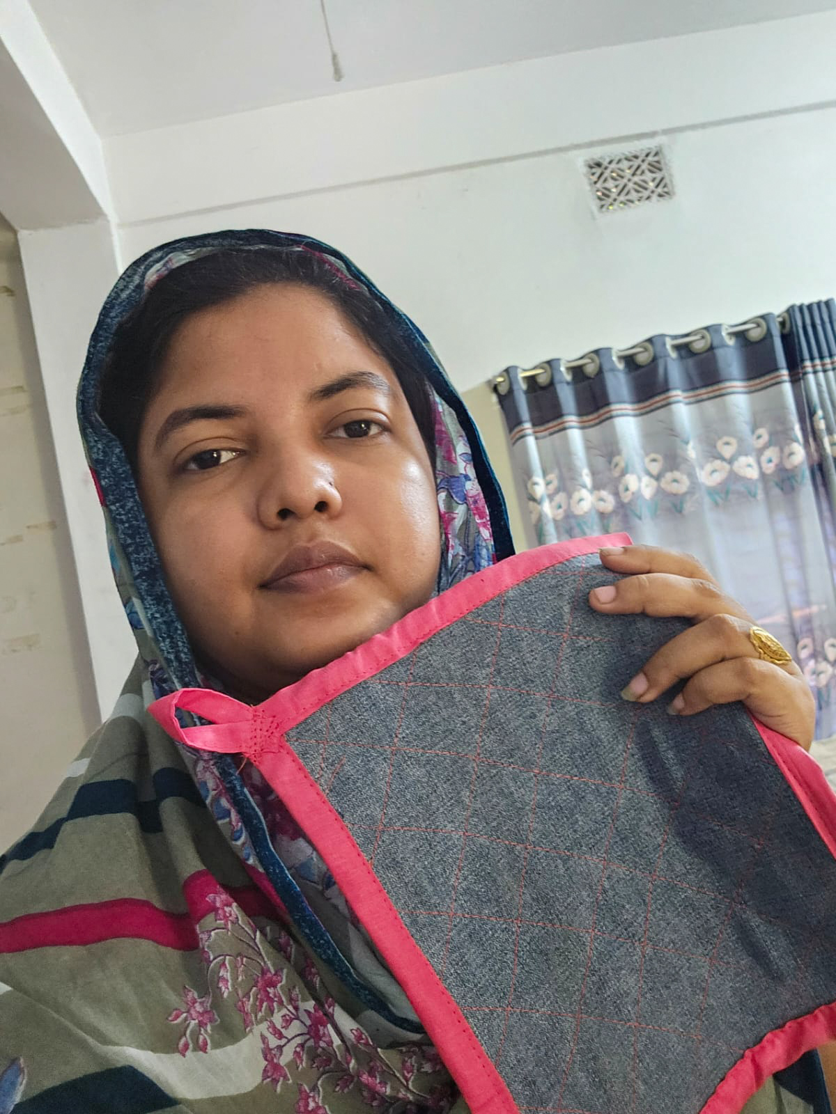 Then I sewed a thin piece of cloth and then attached it to one corner very nicely. Here it looks beautiful after I sewed it.