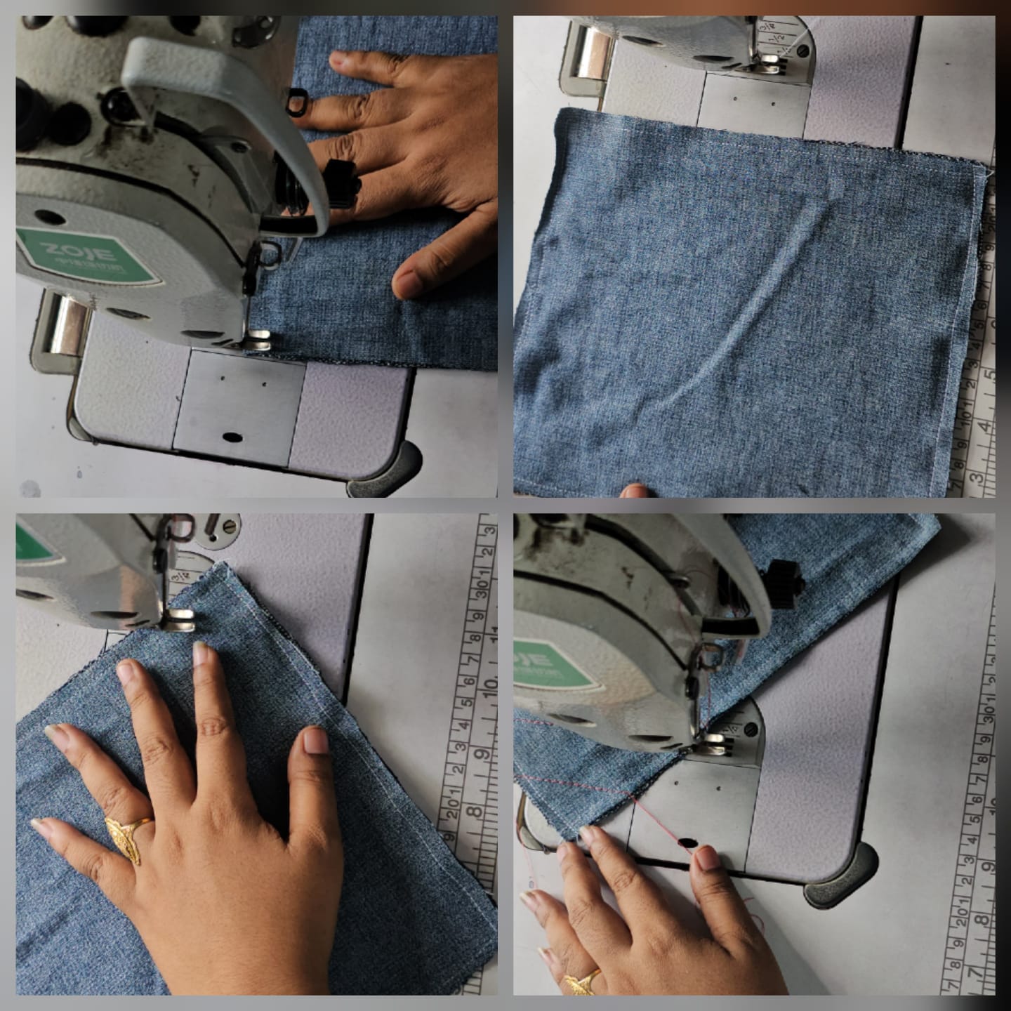 Then I placed the two pieces of fabric one on top of the other and sewed them around. Then I sewed the corners evenly. In this way, I sewed a few stitches one after the other.