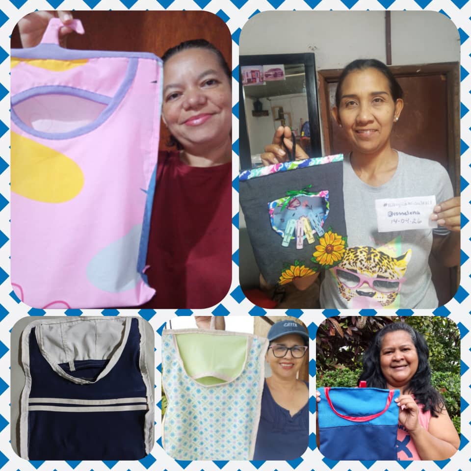 Esta semana el reto era combinar retazos de telas o ropa sin uso, para crear una bolsa para pinzas. Todos ellos entendieron y pusieron en práctica este hermoso y emotivo concepto.