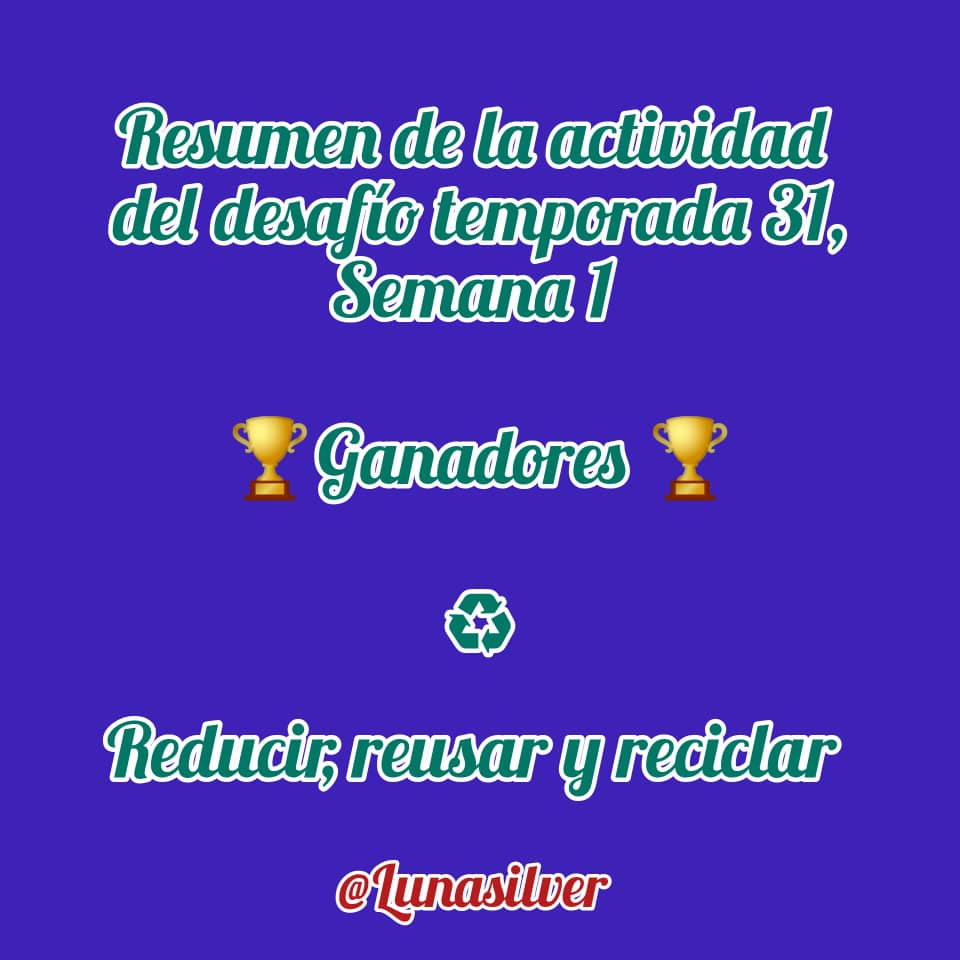Resumen de la semana 1 temporada 31 del desafío de las 3R reducir - reusar - reciclar