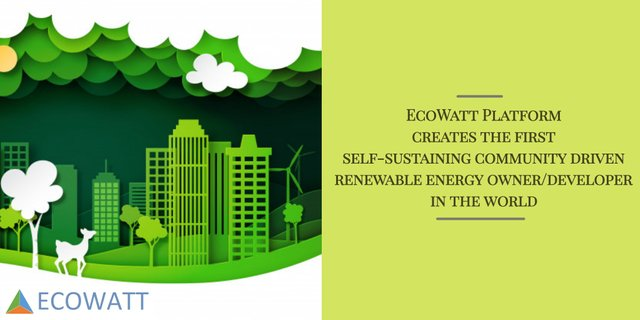 The goal of the EcoWatt platform is to create the first self-sustaining community-driven renewable energy owner/developer in the world. Being driven by the community will allow the EcoWatt team to make decisions that value social and ecological impact higher than traditional shareholder demands. EcoWatt combines renewable energy professionals, with Blockchain experts and social impact entrepreneurs.