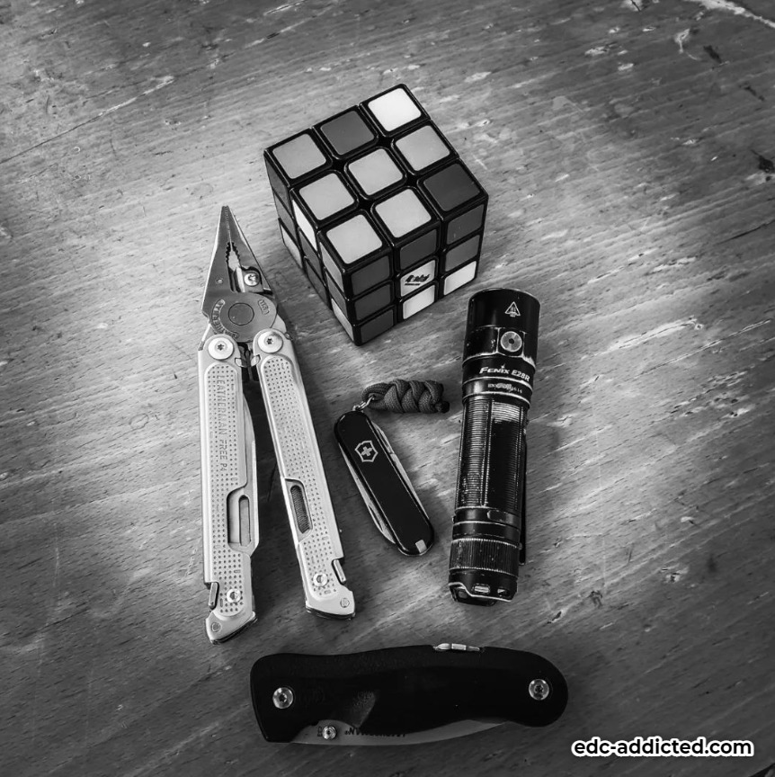 #leathermanfreep4 #victorinoxclassicsd #fenixe28r #leathermanc33 #rubik3x3 #everydaycarry #edcaddicted