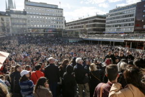 Fans gather to mourn Avicii's death in Stockholm, Sweden. (April 2018)