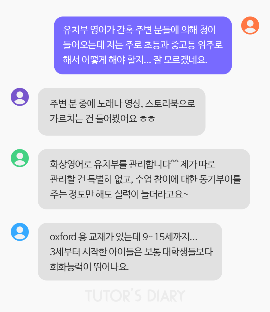 => 엔***** 선생님) #화상영어 로 유치부를 관리합니다^^ 제가 따로 관리할 건 특별히 없고, 수업 참여에 대한 동기부여를 주는 정도만 해도 실력이 늘더라구요~