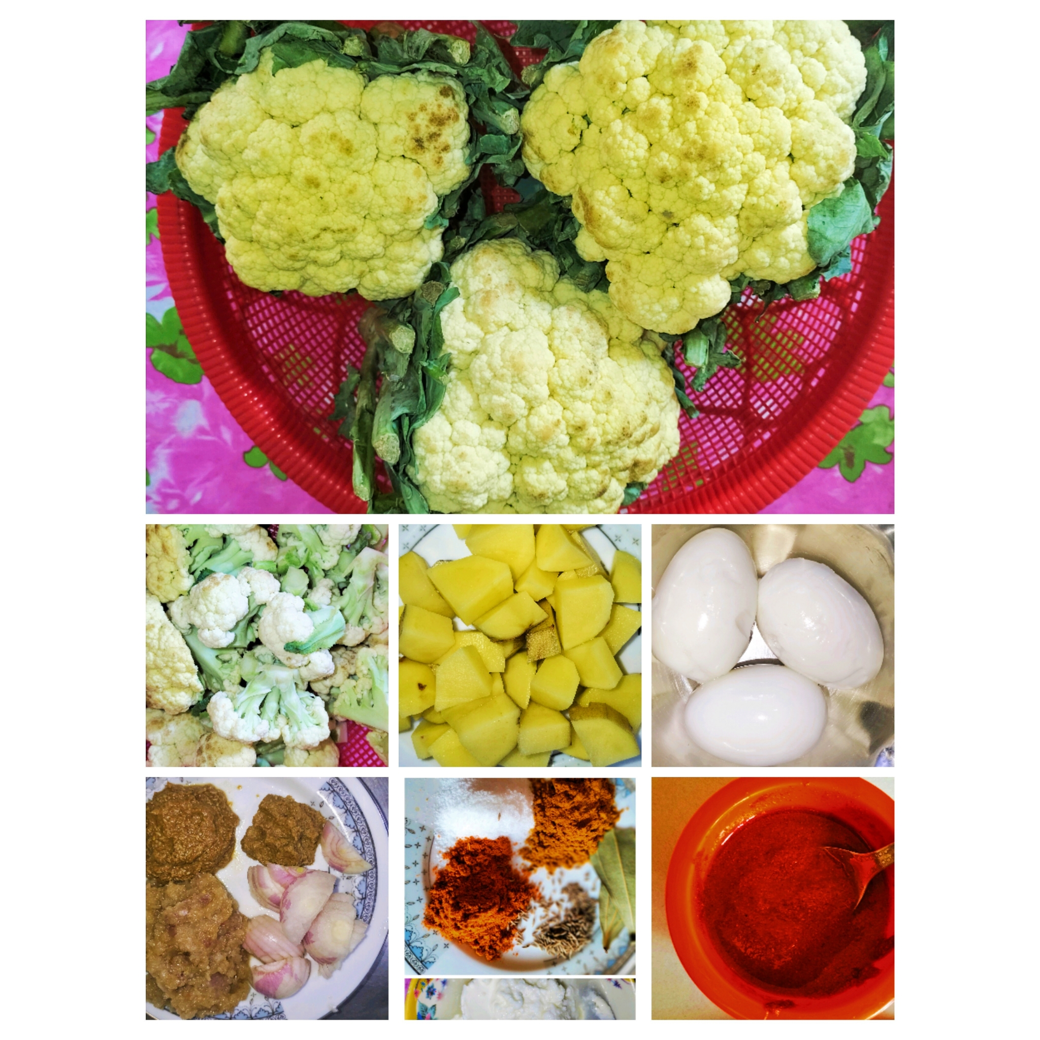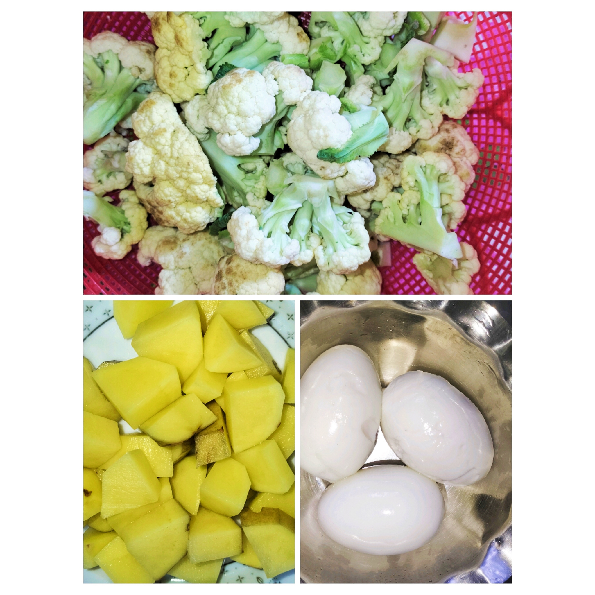 প্রথমে আমি ফুল কপি, আলু,কেটে নিয়েছিও ডিম সিদ্ধ করে খোসা ছড়িয়ে নিয়েছি।
