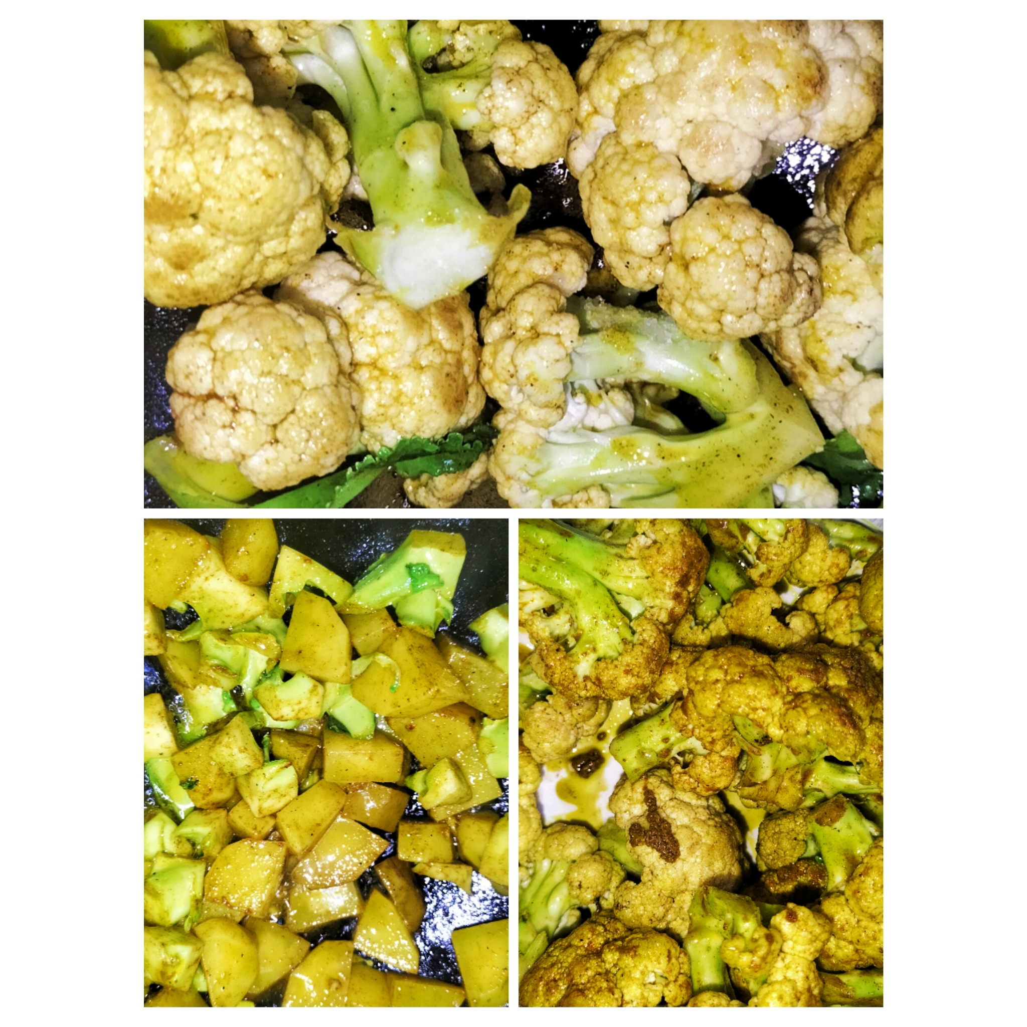 এর পর আমি ফুল কপি ও আলু গুলো তেলে ভেজে নিয়েছি লবন হলুদ দিয়ে।