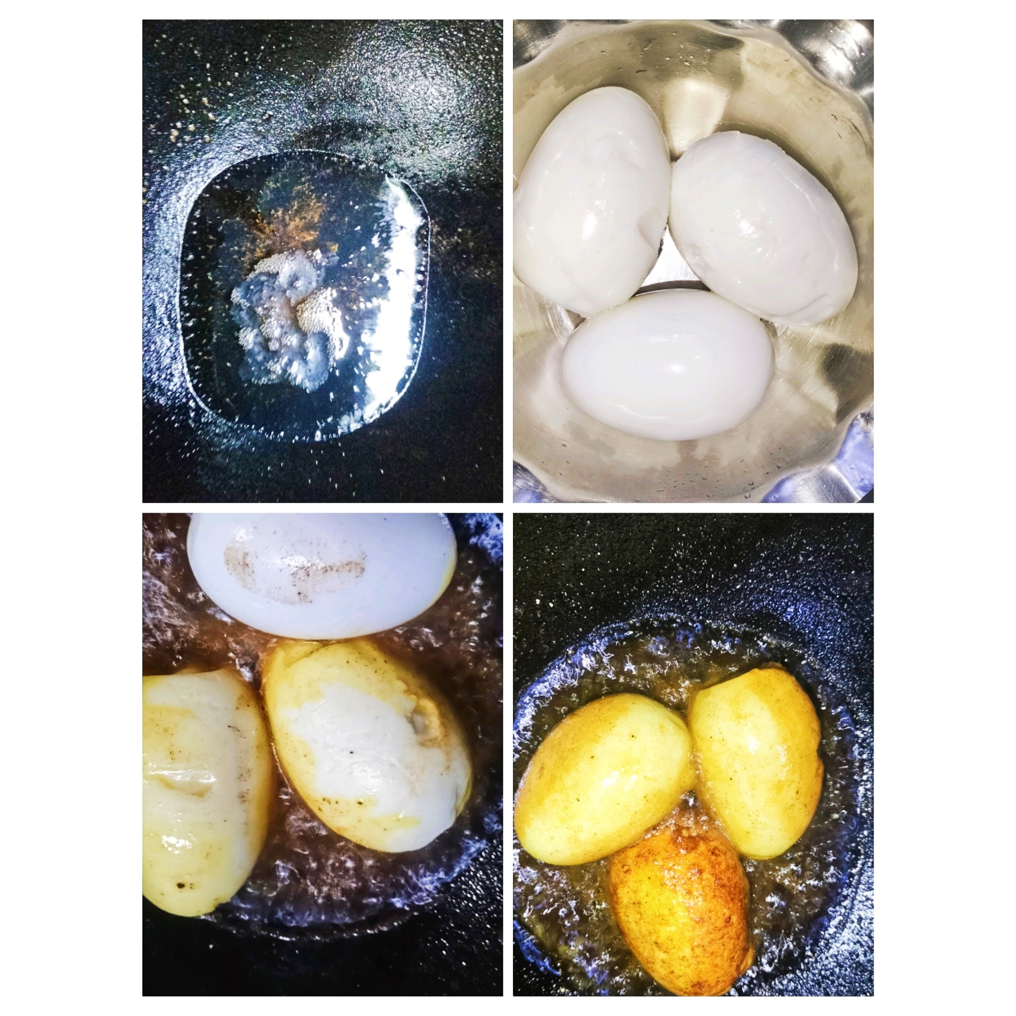 এখন আমি চুলায় কড়াই বসিয়েছি ও তাতে তেল দিয়েছি। তেল গরম হয়ে গেলে আগে থেকে সিদ্ধ করা ডিম গুলো ভালো করে ভেজে নিয়েছি লবন হলুদ দিয়ে।