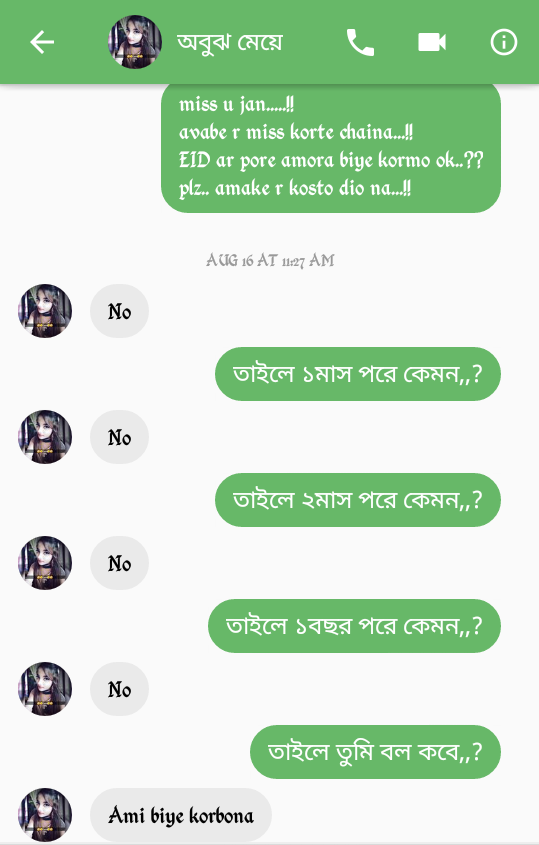 তার মানে আমি তোমাকে অনেক জালাইছি, আর সেই কারণে আমার সাথে মজা করলা? এটা কি ঠিক হলো? সেটা তুমি ভালো করে জানো ঠিক করলা কি না, একটা কথা মনে রাখবে মানুষের মন নিয়ে খেলা করা ঠিক না, তোমার কাছে হয়তো এটা fun মনে হতে পারে অন্য কারো কাছে না।