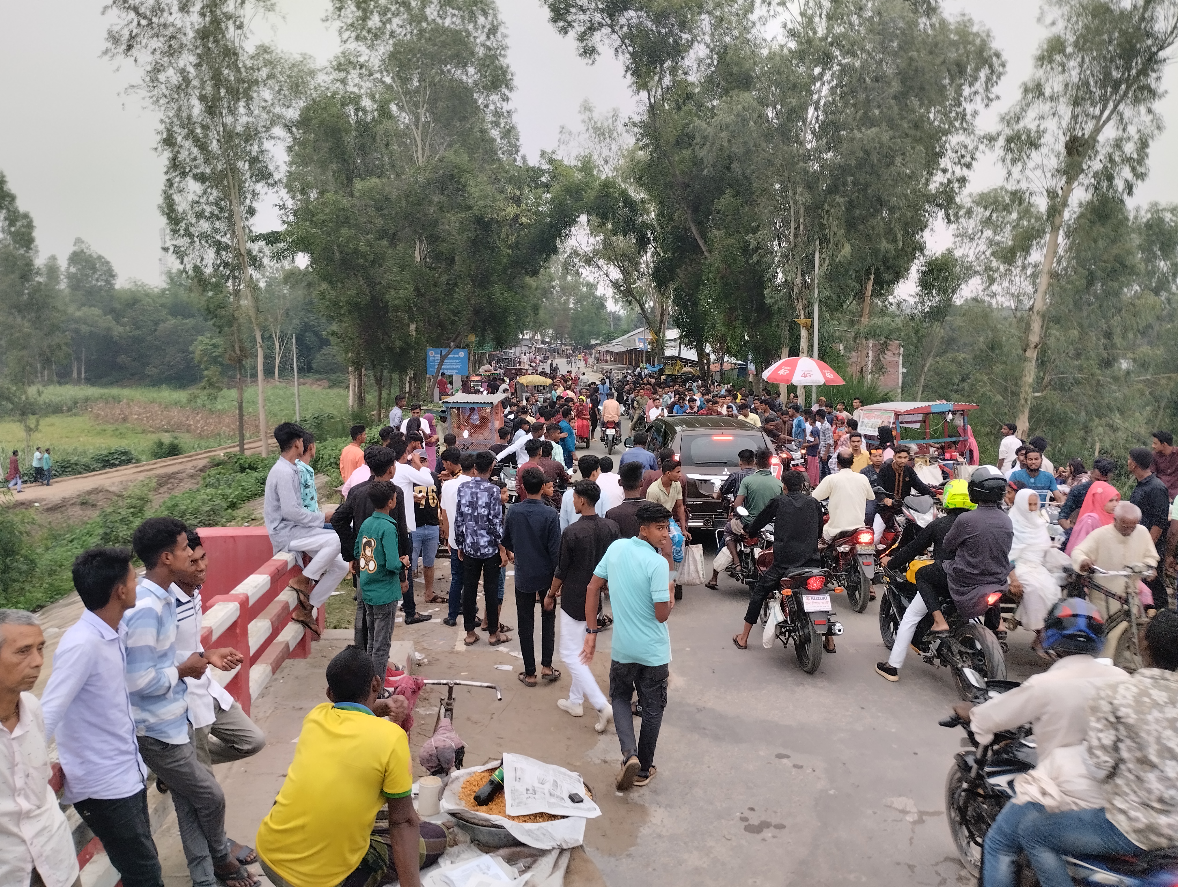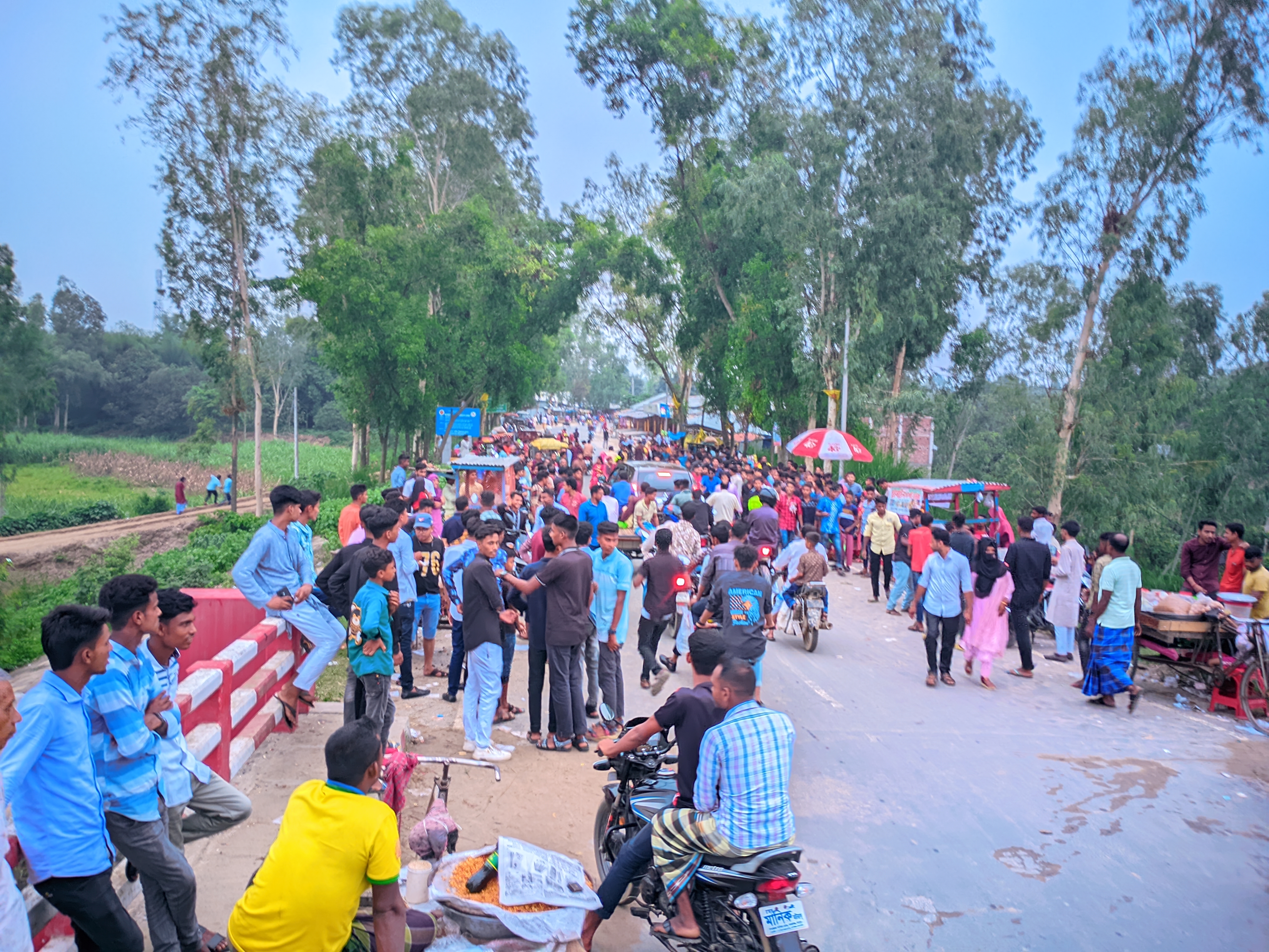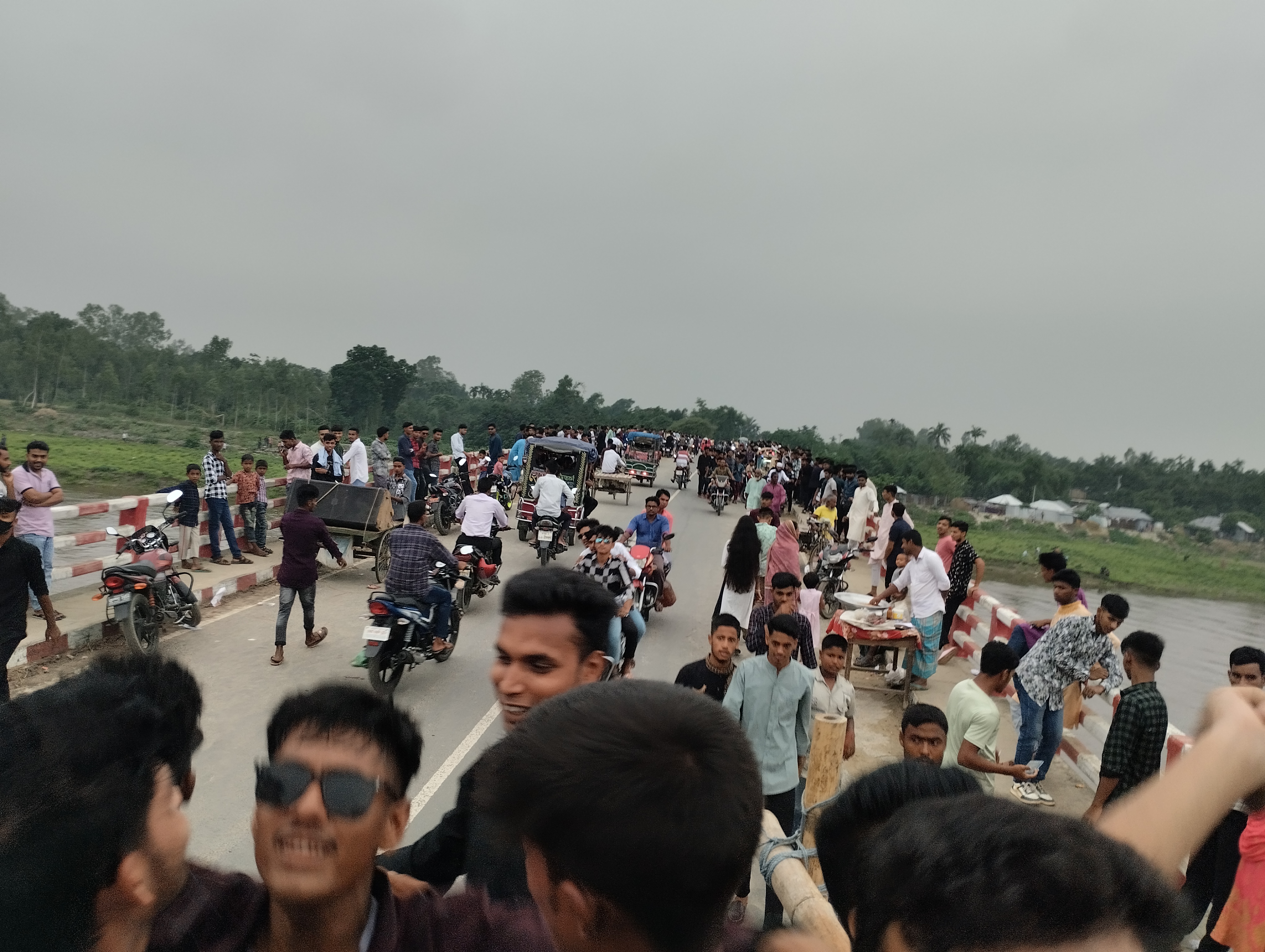 অল্প সময়ের মধ্যে গাড়ি টি আমাদের কে নাগের হাট ব্রিজের মধ্যে পৌঁছায়। আমাদের বাসা থেকে নাগের হাট ব্রিজের দুরুত্ব খুবই অল্প।তাই অল্প সময়ের মধ্যে আমরা নাগের হাট ব্রিজের মধ্যে পৌঁছে গিয়েছিলাম। নাগের হাট ব্রিজের মধ্যে যাওয়ার পর দেখতে পারলাম, নাগের হাট ব্রিজের উপর প্রচন্ড পরিমানে মানুষের ভীড় জমে গিয়েছে।আর প্রচন্ড পরিমানে মানুষের ভীড়ের কারণে গাড়ি নিয়ে সামনের দিকে এগিয়ে যাওয়া সম্ভব হচ্ছিল না। এরপর আমরা গাড়ি ব্রিজের একপাশে সাইট করে গাড়ি থেকে নেমে পড়লাম।