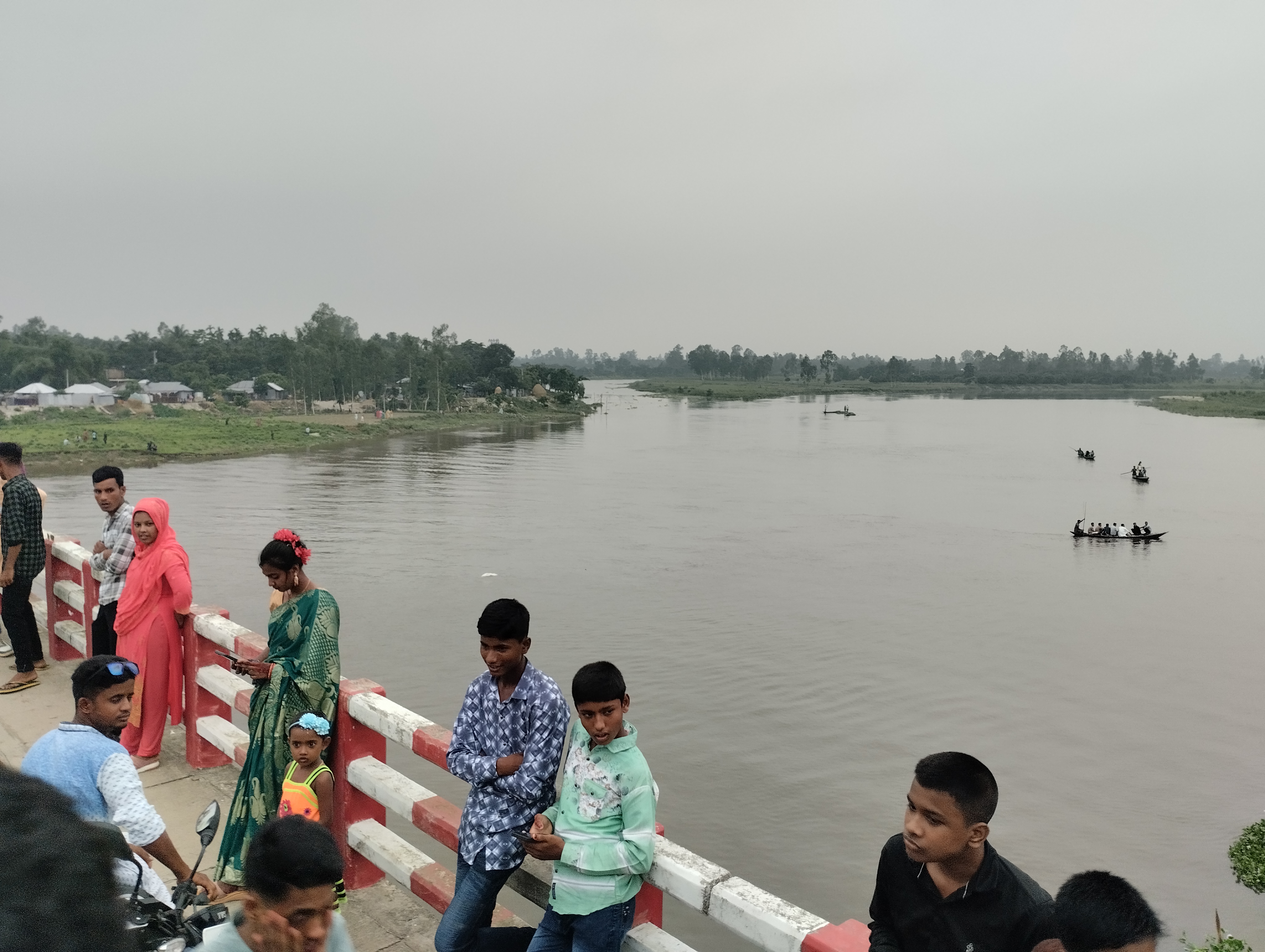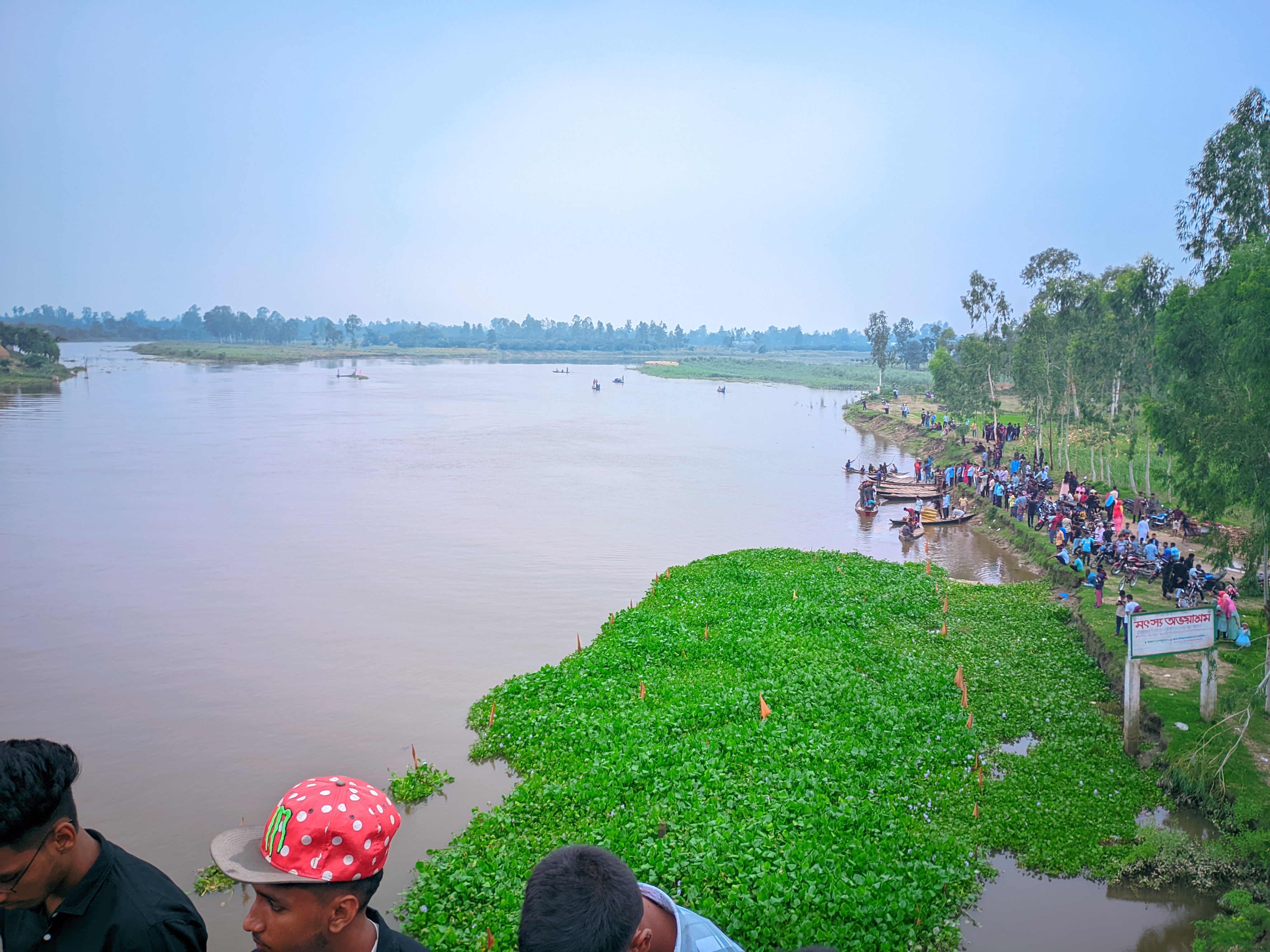 এরপর আমরা ব্রিজের উপর নেমে দেখতে পারলাম, অনেকেই বক্স বাজিয়ে আনন্দ উপভোগ করছে। আবার অনেকেই পিকআপের উপর বক্স সেট করে ড্যান্স করছে। এগুলো দেখতে আমার কাছে অনেক বেশি ভালো লাগছিলো।আমি সকালের আনন্দ উপভোগ করা দেখছিলাম একদম মনযোগ সহকারে। আবার এই প্রচন্ড পরিমান মানুষের ভীড়ে অনেক জন মানুষ বিভিন্ন ধরনের খাবারের দোকান দিয়েছিল। আমরা আমাদের গ্ৰামের কয়েকজন ছেলে একটি বারো ভাজার দোকান থেকে বারো ভাজা কিনে খেয়েছিলাম।বারো ভাজা গুলো খেতে বেশ ভালোই লেগেছে আমার কাছে। এরপর আমরা নদীর চারদিকে বেশ কিছুক্ষণ সময় ঘোরাঘুরি করেছি। ঘোরাঘুরি শেষ করে আমরা বাসায় ফিরে এসেছি সুন্দর ভাবে।