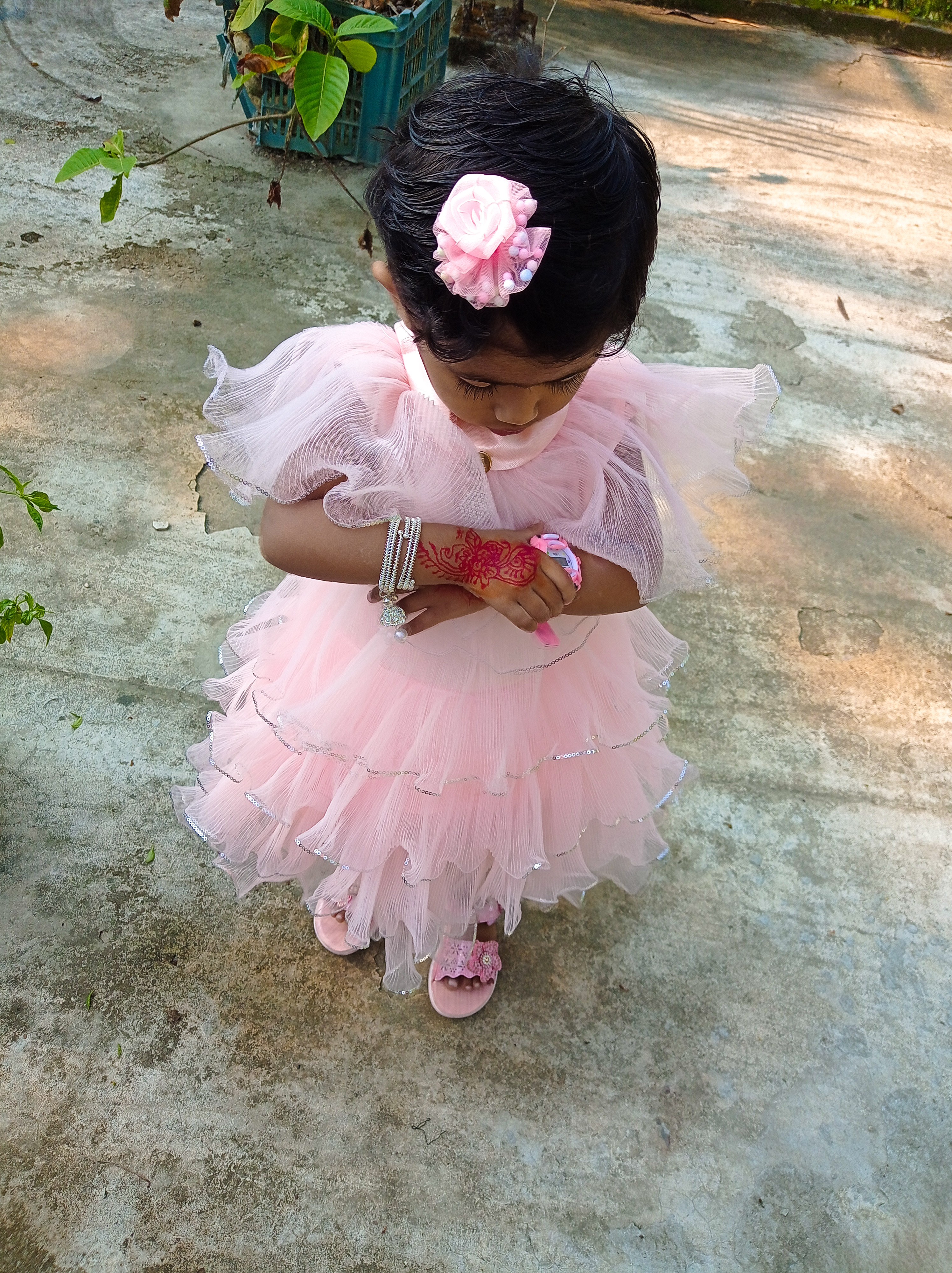 সকালে ঘুম থেকে উঠেই মেয়েটাকে ঘুম থেকে তুলে ফেলেছি। তাকে গোসল করিয়ে নিলাম শুরুতে। তাকে নতুন জামা পরিয়ে যখন দিতেছিলাম তখনই মেয়েটা নানার বাড়িতে যাওয়ার কথা বলতেছিল। আসলে এটি প্রতিদিনের অভ্যাস। প্রতিদিন যখন তাকে গোসল করিয়ে ঘরে আনি তখনই নানার বাড়িতে যাওয়ার কথা এবং মামার বাড়িতে যাওয়ার কথা বলবেই এ বিষয়টা নিয়ে আরেক ঝামেলায় থাকি। কারণ কিছুক্ষণ কান্নাকাটি করবে। যাইহোক এরপর ঈদের জামা কাপড় গায়ে দিয়ে দিলাম। এর ভিতরে তার বাবা ঘুম থেকে উঠে মসজিদে চলে যাচ্ছিল।