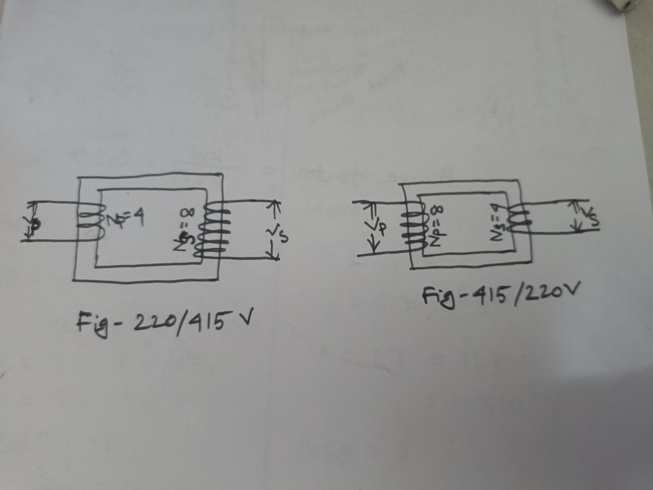 (Vs)that is less than the primary voltage(Vp), which is indicated in the diagram as 415/220 V.The Left Transformer (220/415 V): Is a transformer that is known as a step-up transformer why step-up, it is simply because it is a transformer with secondary voltage