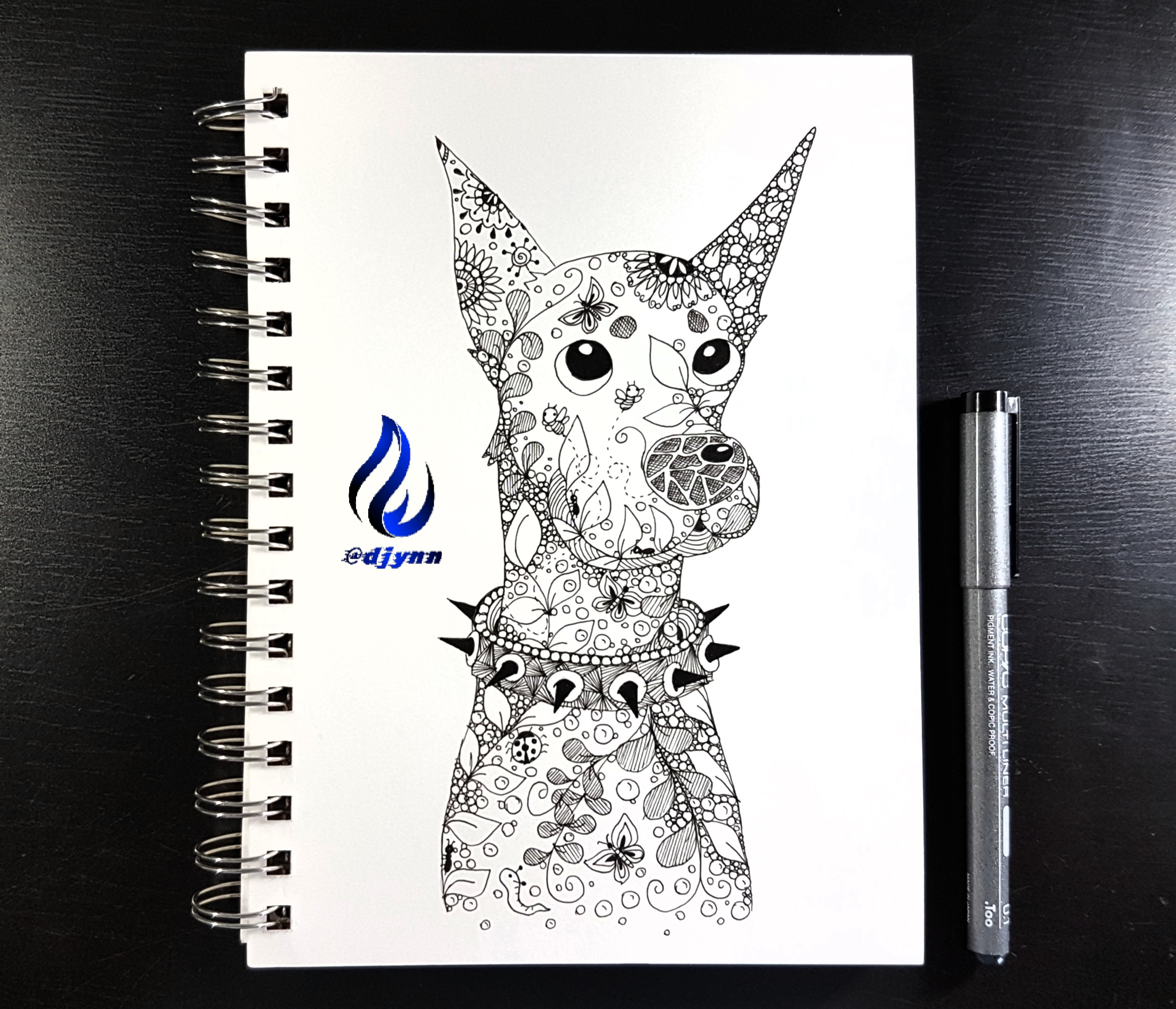 Nice ドーベルマソ drawing :) You used technical drawing well in doodle drawing. :)
