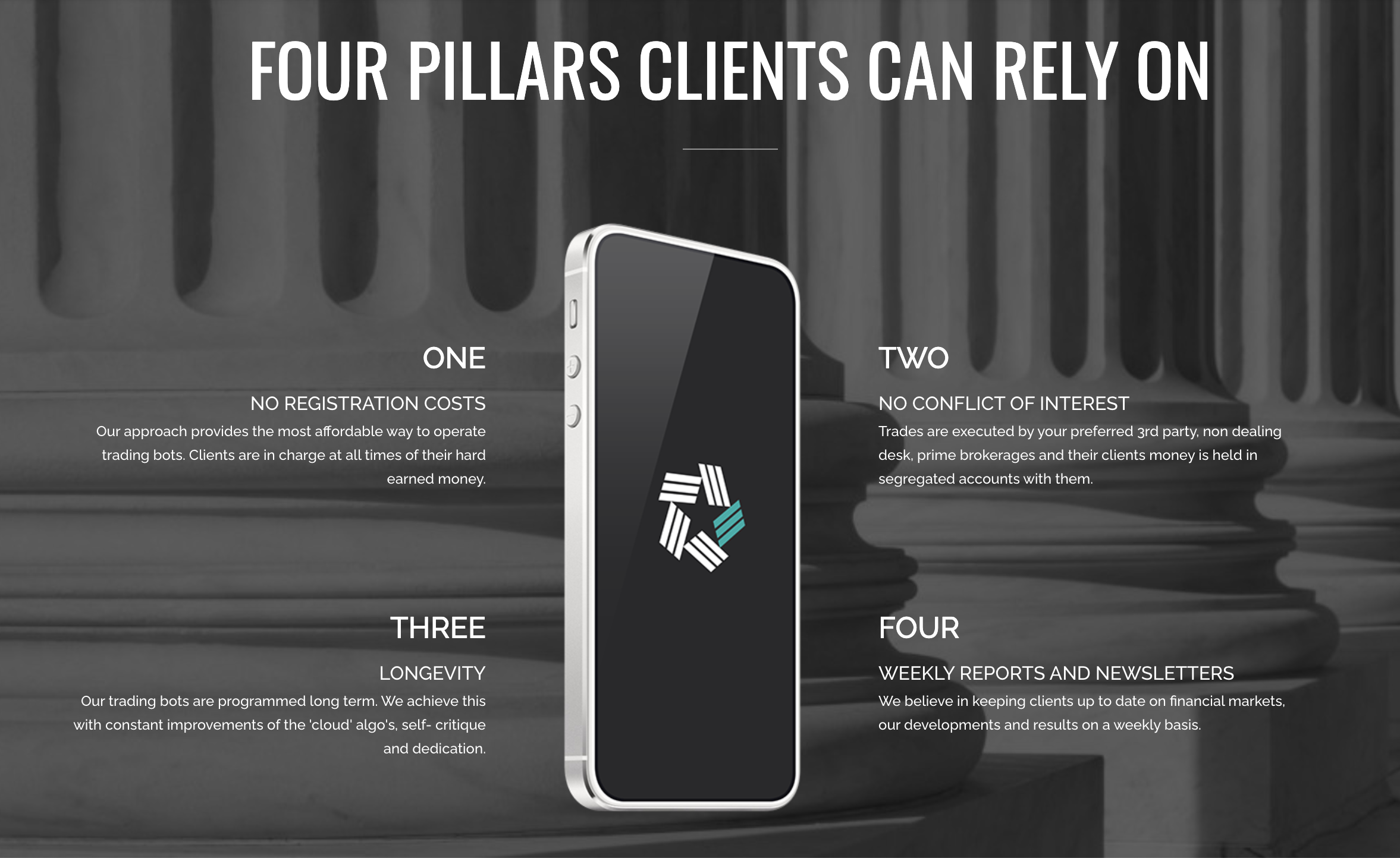 お客様の取引ボット戦略の取引は、完全な透明性と分離された口座で、金融監督庁に登録されたお客様のお好みのサードパーティ公認のプライム証券会社とティア1流動性プロバイダーを介して、お客様の裁量で接続され、実行されます。これらの証券会社は、参加者の資産を最大限に保護し、資金が分離された口座に預け入れられていることを知って、参加者が強い安心感を得られるように努めています。私たちは、規制されていないブローカーを紹介することは決してありません。
