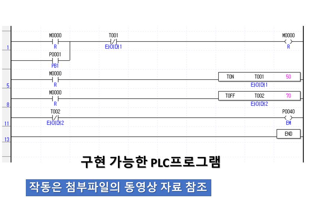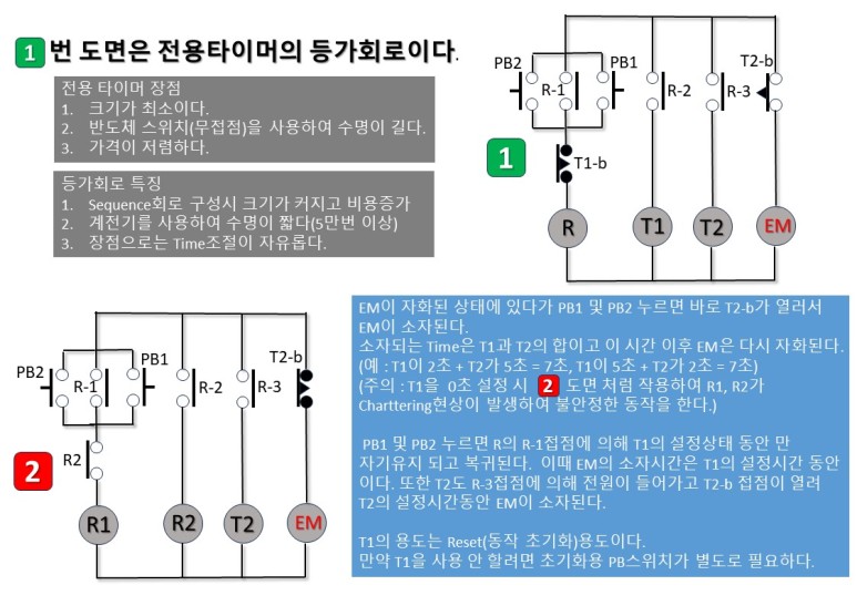 고장점검과 함께 회로구성을 이해하기 위하여 도면을 그렸고 전용타이머와 등가 Sequence회로 및 PLC로도 구현을 했다. 많은 분들이 이해하여 기술력 향상이 있었으면 하는 마음을 가져봅니다.