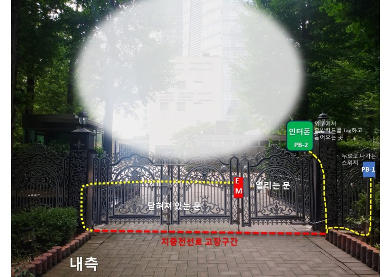 벨을 누르면 출입자를 확인하고 “전자석 개폐장치“ 푸쉬버튼을 눌러 대문을 개폐하는 방식이었는데 푸쉬버튼을 아주 짧게 눌러야 하는데 조금만 길게 눌러도 과열이 발생하여 소손(코일의 절연파괴됨)으로 누전이 발생하여 대문을 만지면 전기가 와서 놀랐던 기억이 있을 것이다.