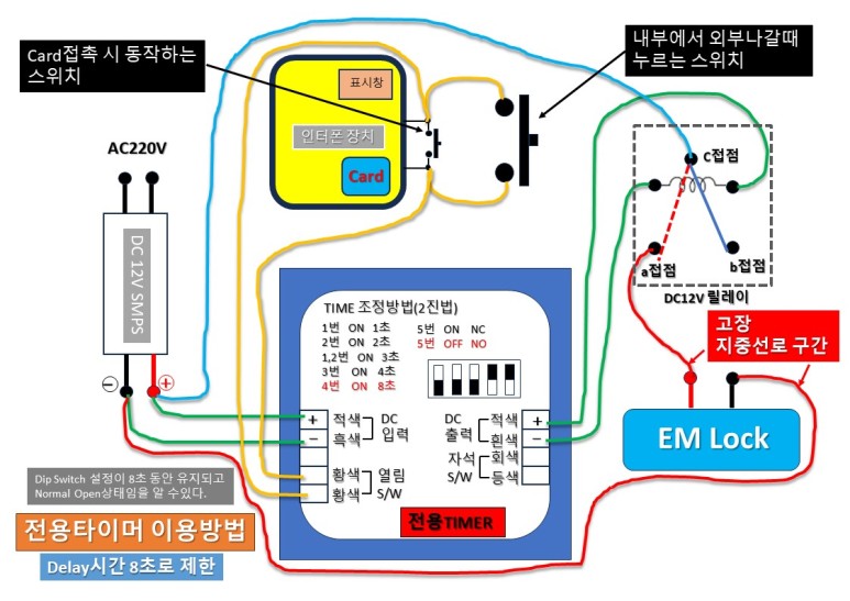 이상한 현상이 일어났다. EM-Lock의 결선을 풀면 DC12V가 나오고 결선을 하면 0V가 나온다.