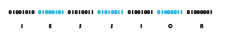 Now I will show you how to write your name in binary, for example my name is JESSICA if I transform it into a serious binary: