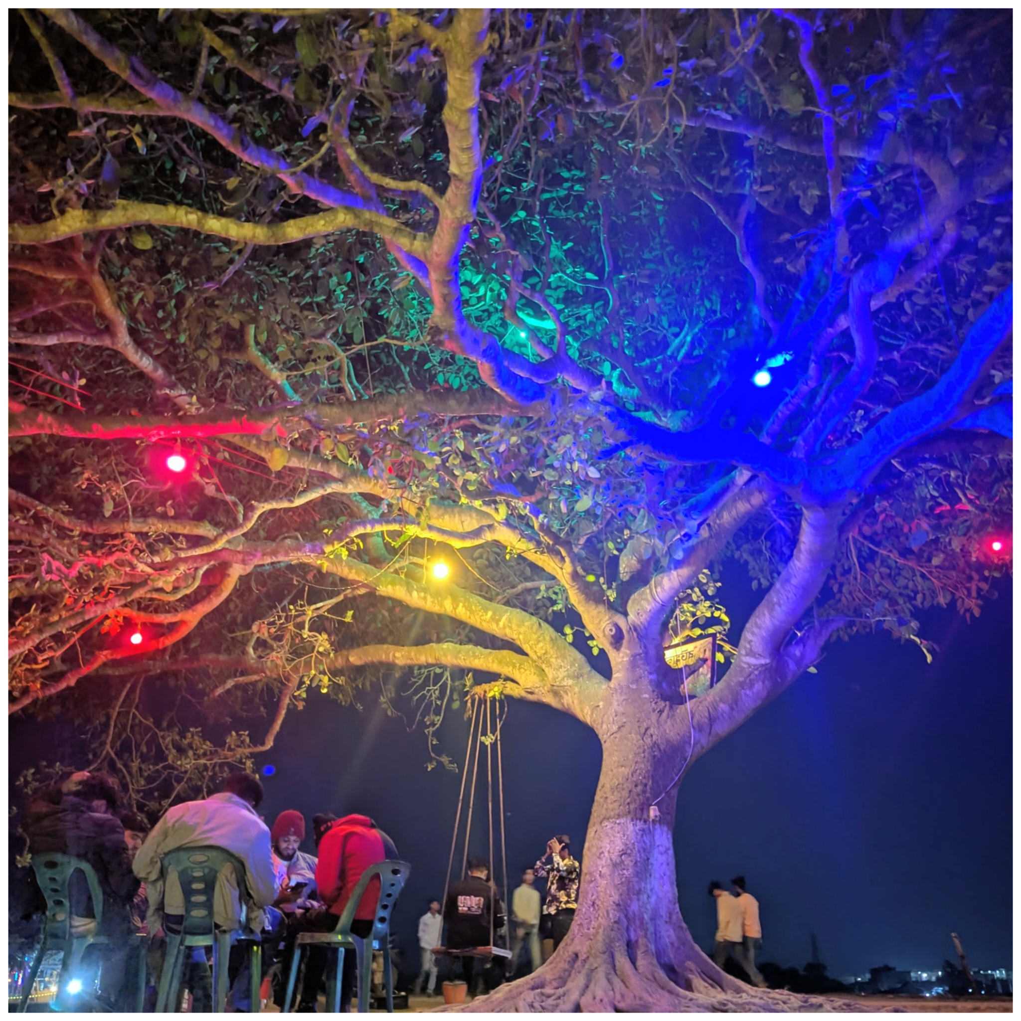 সেখানে যেতেই দেখতে পাওয়া যায় বিরাট এক বটগাছ। এই বট গাছের জন্যই হয়তো নামটি বটমুল ক্যাফে দেওয়া হয়েছে।সেই গাছে রয়েছে বিভিন্ন ধরনের আলোকসজ্জা। তার সাথে একটি মাচাও রয়েছে এবং একটি দোলনা। এই আলোক সজ্জা সহ সাজানো জায়গাটুকু ক্যাফে কে আলাদা রকম সুন্দর করে তুলেছে। প্রথমেই বট গাছে নিচ দিয়ে চলে গেলাম ক্যাফের মধ্যে। সেখানে রয়েছে আরও বিভিন্ন ধরনের আলোকসজ্জা। সেখানে রংবেরঙের মানুষেরও ভিড় ছিল। সকলে এসেছে শীতের সন্ধ্যার তৃপ্তি চায়ে মিটিয়ে দিতে।