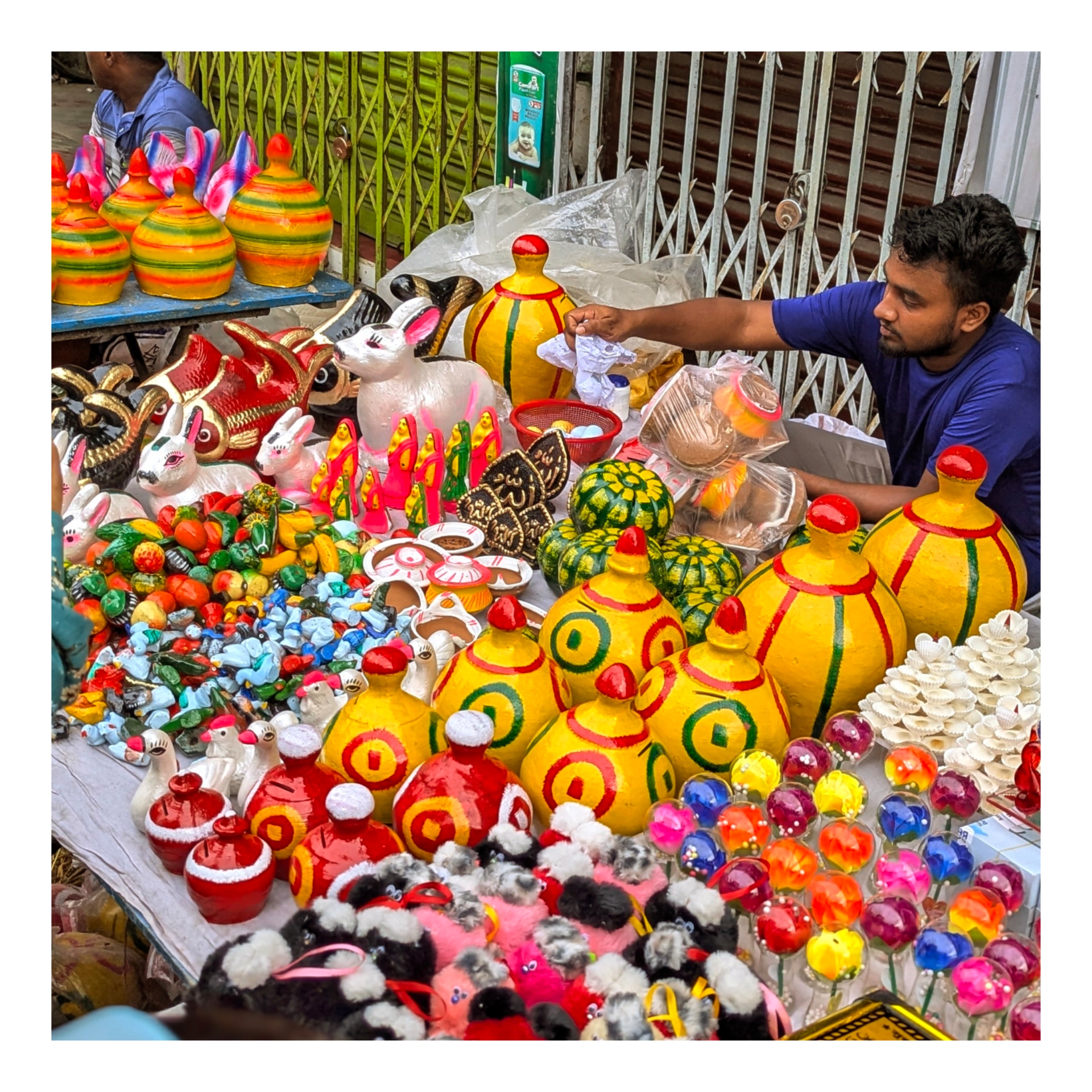 আমরা যখন রথ মেলায় পৌছালাম তখনো রথ আসার সময় হয়নি। আমি আপনাদের সাথে ঘোরাঘুরি করলাম মেলার মধ্যে। আমরা মেলার এ পাশ থেকে ওই পাশ পর্যন্ত ঘোরাঘুরি করলাম। রাস্তা জুড়ে মেলা বসেছে। বিভিন্ন ধরনের জিনিস দেখলাম। তবে কেনার মত কিছুই পাচ্ছিলাম না। সবকিছুই দেখে মনে হচ্ছিল এসব ছোটবেলার জিনিস। কোথায় যে হারিয়ে ফেললাম সেই শৈশবটা। মেলায় গেলে এটা সেটা কেনার কত বায়না। এখন আর সে বায়না আমাদের সাজেনা। সে বাইনা এখন আর মন ধরতেই চায় না। যাইহোক আপুদের সাথে ঘোরাঘুরি করে বেশ কিছু জিনিসপত্র দেখলাম।