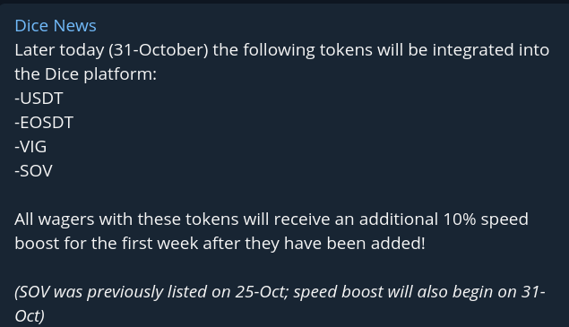 DICEONE, the gambling and banking app on EOS just announced some new token listings.