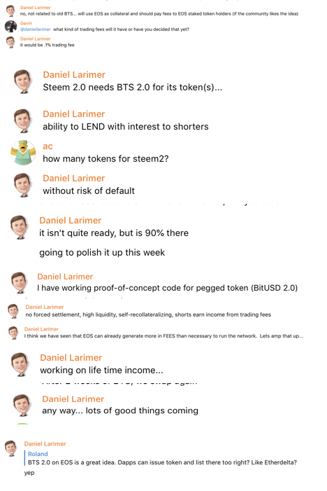 Dan Larimer和Block.One拥有Steemit2.0、BitShares2.0和BitUSD2.0的计划: 请参阅下面的聊天日志从电报。