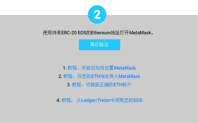 在这一步骤中,用户通过在MetaMask上签署事务,来提供存有EOS的以太坊地址的所有权的加密证明。