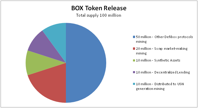- Defibox issues BOX on EOS main chain with a total supply of 100 million.