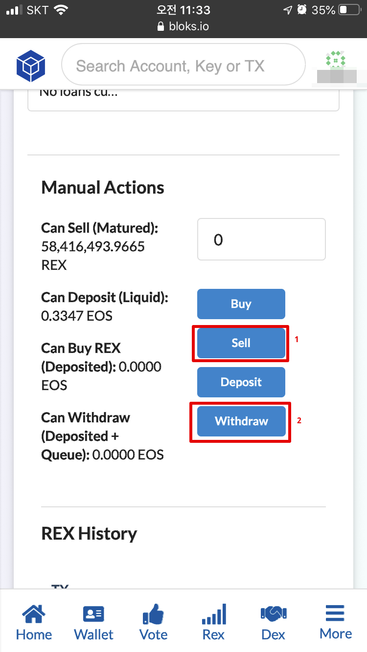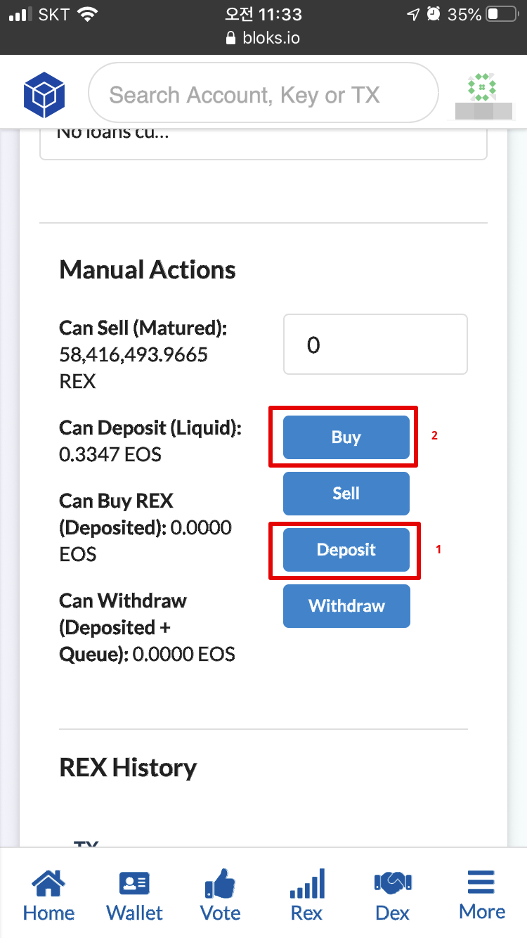 렉스 구입 : 1. eos를 렉스풀에 원하는 양만큼 deposit