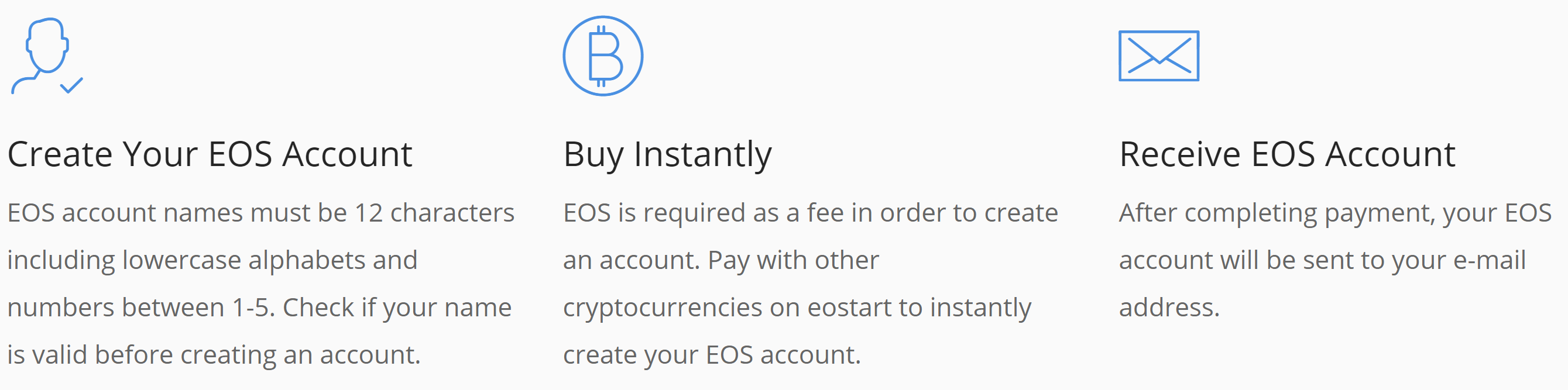 이오스타트(eostart)는 BTC/BCH/ETH/LTC로 새 EOS 계정을 생성할 수 있습니다.