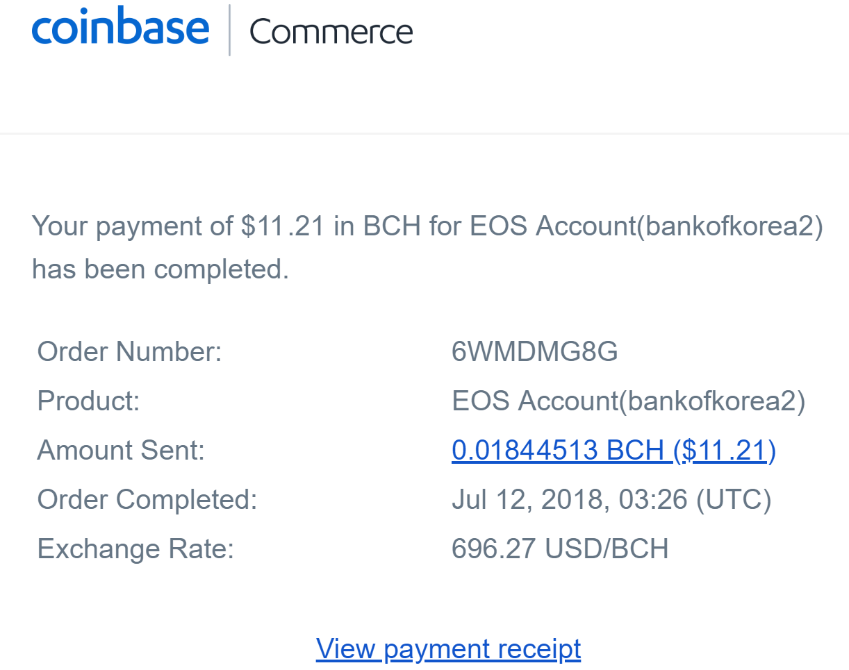 (카드 결제가 됐으면 했는데 아쉽게도 카드 결제는 되지 않아서 비트코인캐시로 결재했습니다.)