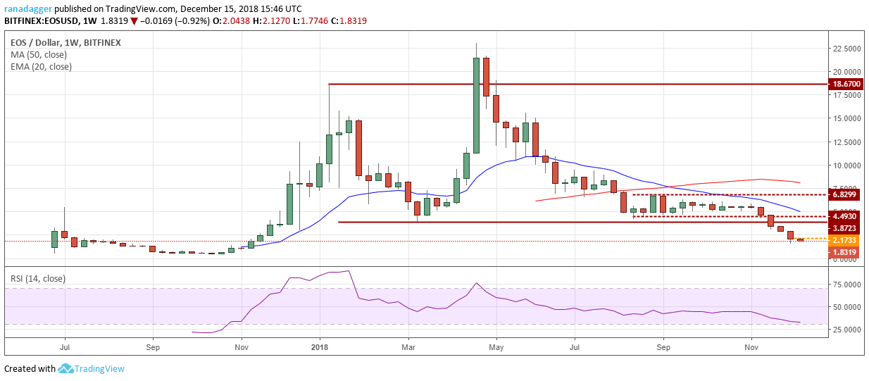 EOS’ price has seemingly been starting to hold on to a specific price level this week. Prior, the cryptoasset was seeing its value decline against the US dollar over various successive trading sessions. The crypto’s current range is marked by the $2 and $1.5 territories. The 14-day SMA is currently above the upper limits of the range.