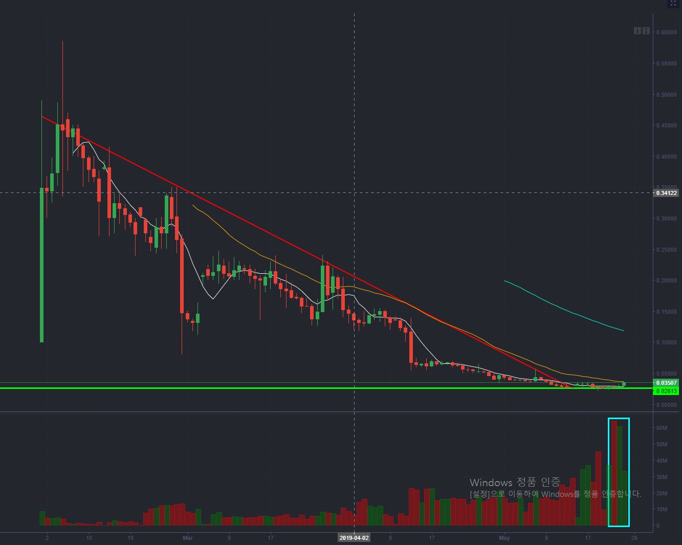 매일매일 ICO 물량이 200만개씩이나 풀리는데 말이죠... 토큰 개당 1달러라고만 해도 다음날 22억원 가치의 토큰이 풀리는데도 말입니다.. 유통량 무시하고 그냥 날아가죠...짧게 정리하면, 상장 이후 단기 펌핑 > 급락 후 하락채널 > 거래량이 터지면서 횡보채널 > 역대급 거래량 터지면서 펌핑 시작.