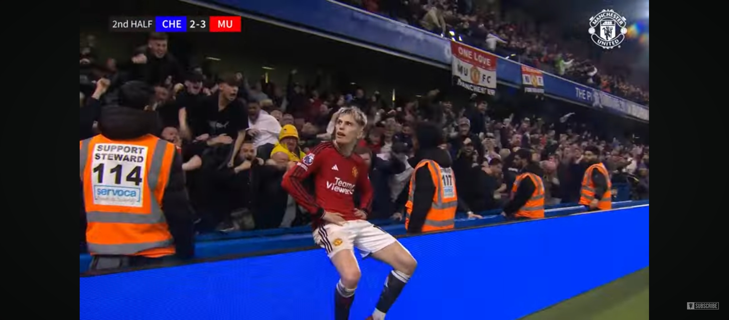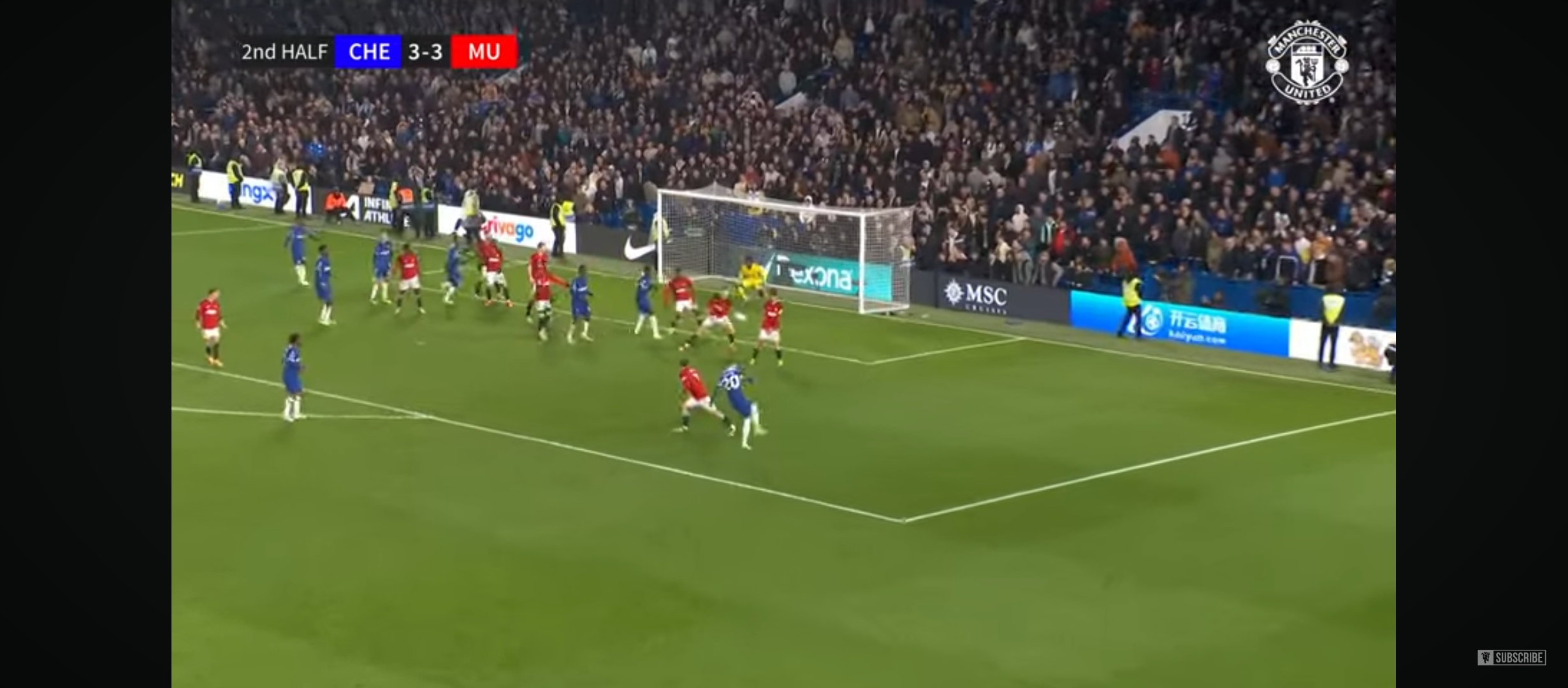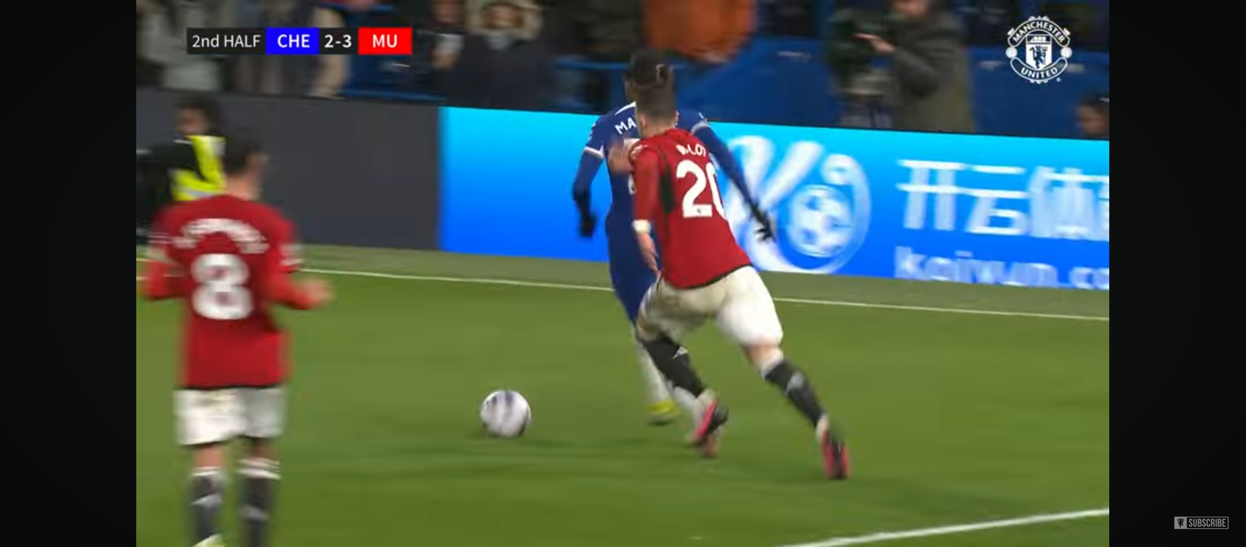 কিছুক্ষণ পর ম্যাচের ৩৪ মিনিটে ম্যান ইউ এর হয়ে গোল করে আর্জেন্টাইন তরুন উইঙ্গার গার্নাচো। ছেলেটা দারুণ খেলছে এই সিজেনে। ম্যাচে তখন ২-১ এ এগিয়ে চেলসি। কিন্তু এর ঠিক ৫ মিনিট পরে ম্যাচের ৩৯ মিনিটে অসাধারণ এক হেডে গোল করে ব্রুনো ফার্নান্দেজ। এবং এই গোলে ম্যাচে ২-২ এর সমতা চলে আসে হাফ টাইমের আগেই। তখন যেন ম্যাচে আবার একটা প্রতিযোগিতা শুরু হলো। ২-২ গোলের সমতায় প্রথমার্ধের খেলা শেষ হয়। দ্বিতীয়ার্ধে মাঠে নেমে অসাধারণ খেলতে থাকে ম্যান ইউ। চেলসির থেকে তারা আক্রমণ বেশি করছিল। এর ফলস্বরুপ ম্যাচের ৬৭ মিনিটে এন্টোনার অসাধারণ একটা অ্যাসিস্টে গোল করে দলকে `লিড নিয়ে এসে দেয় সেই তরুন গার্নাচো। ম্যাচে তখন ২-৩ গোলে এগিয়ে ম্যান ইউনাইটেড। আমি ভেবেছিলাম হয়তো এখানেই ম্যাচ শেষ। কিন্তু মানুষ যা ভাবে সেটা কী হয়। না গতকাল যেন তখনও নাটক বাকি ছিল।