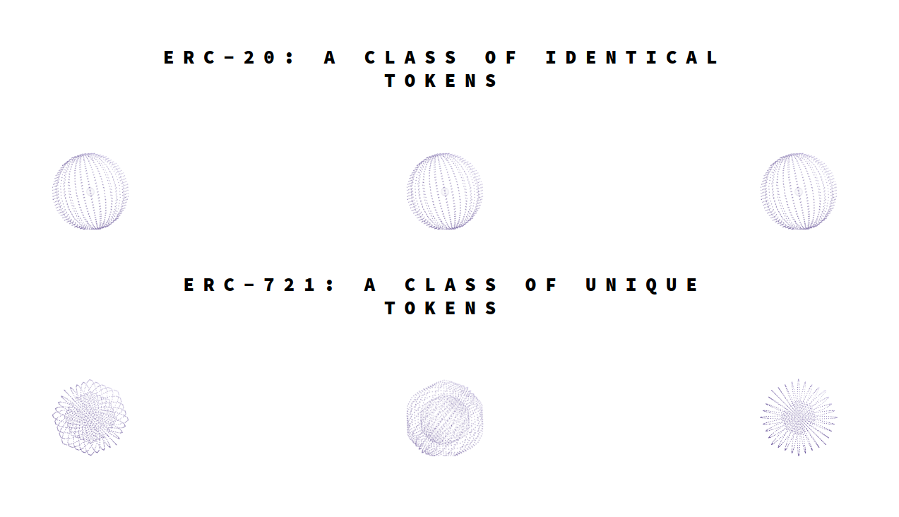 同樣的概念搬到區塊鏈上,其實早期區塊鏈上所有的資產都算是Fungible,畢竟他們都只是電腦裡面的數字變數,我所擁有的1.5個ETH跟另外一個人的1.5 ETH一模一樣的,這就是貨幣最基本的特性。