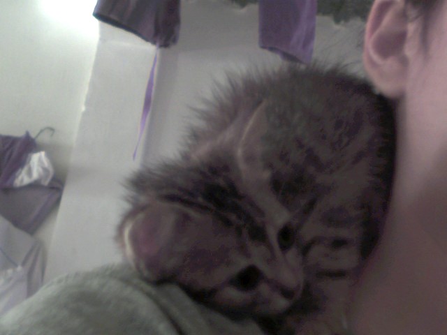 Le gusta acomodarse en mi hombro cuando estoy en la PC que gatito tan adorable